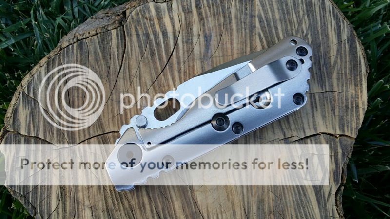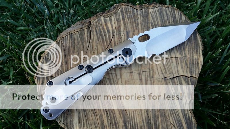 Up for sale is a MSC SMF CC-T in all Titanium slabs with orange peel finish. This knife has an outstanding tanto nightmare grind. This knife is ultra smooth opening and closing with a solid lockup and no stick at all disengaging. This one makes you smile when its in your hands. I love this particular knife because of its sterile appearance. There are no MSC logos or graphics to interfere with the beauty of the design. This knife is unused or sharpened. An outstanding example of Micks work. This knife comes with MSC velcro pouch.