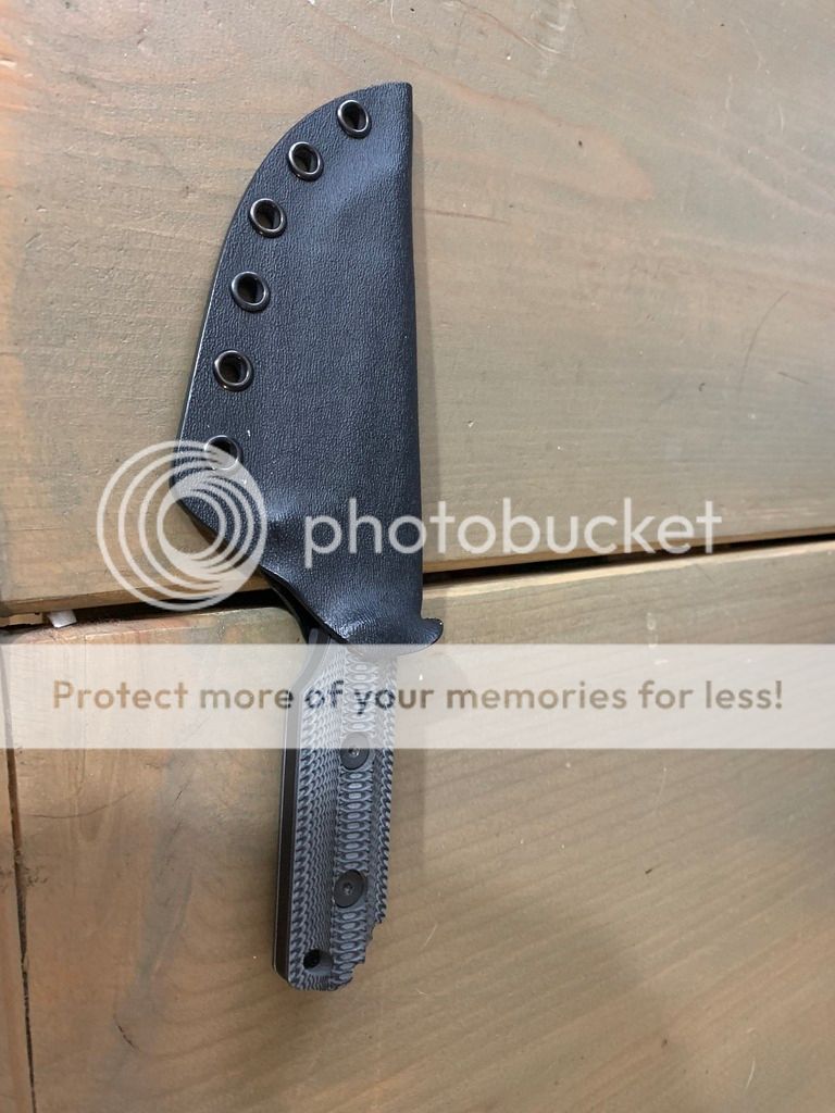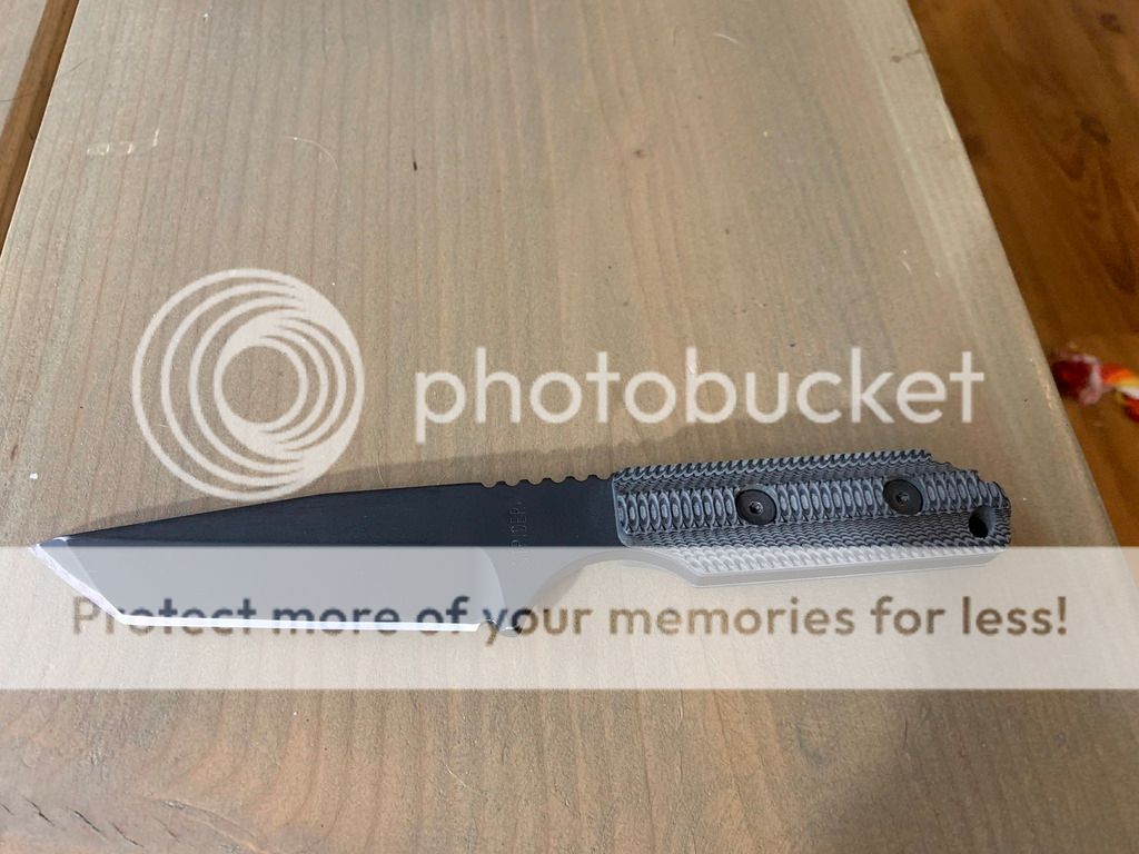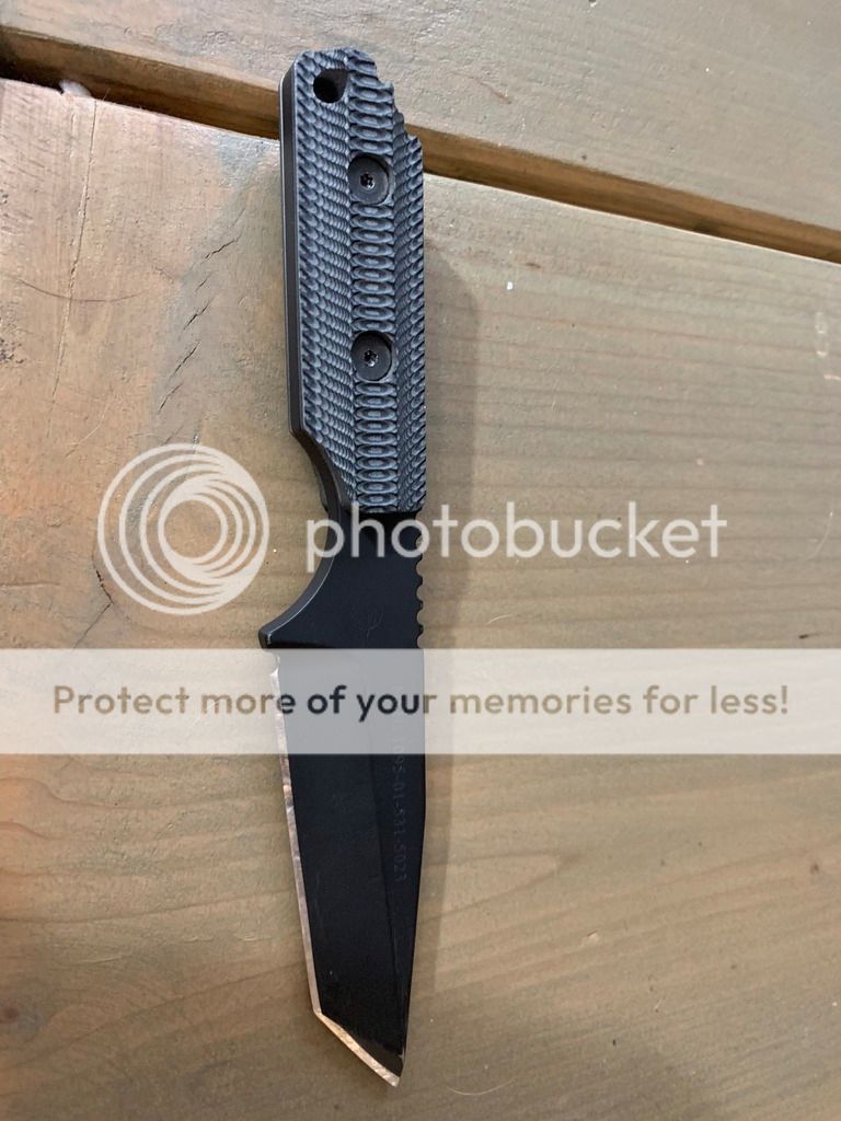 Has been carried IWB and used to cut tape and a little cardboard. Marks/ fading is from the sheath, not use, I believe. Asking $325. PM with any questions. No trades please. Cross posted.