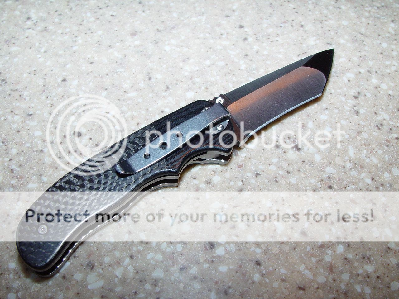 A Randy Doucette Watchdog, new and un used, black micarta and carbon fiber, lockup is tight and centering is on. Liner is jeweled, action is very smooth. asking $OLD