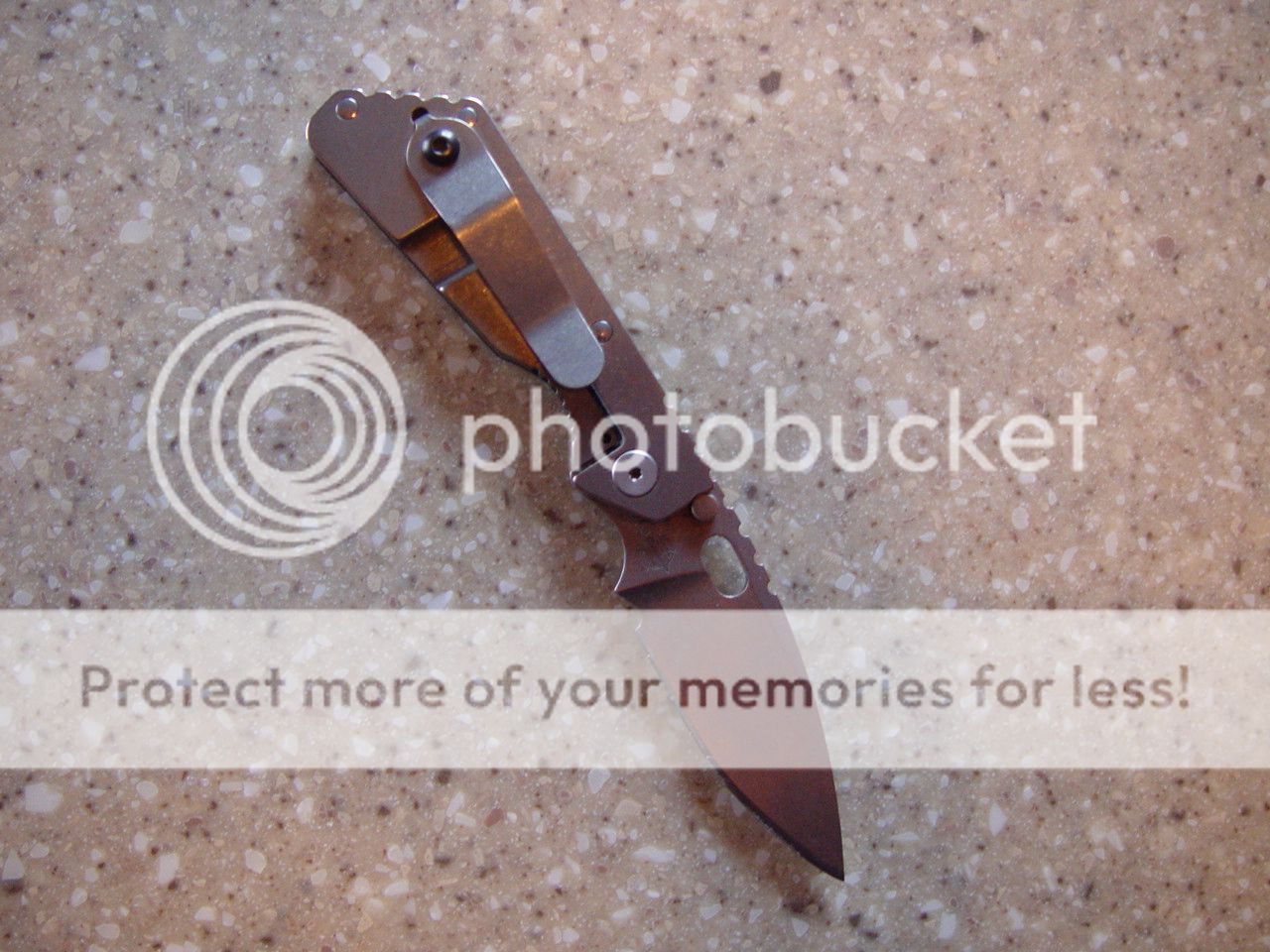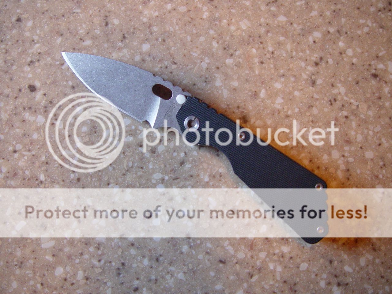 A Strider PT, has been used and sharpened, stonewashed lockside and blade, black G-10, a tad bit of blade wiggle, asking $OLD