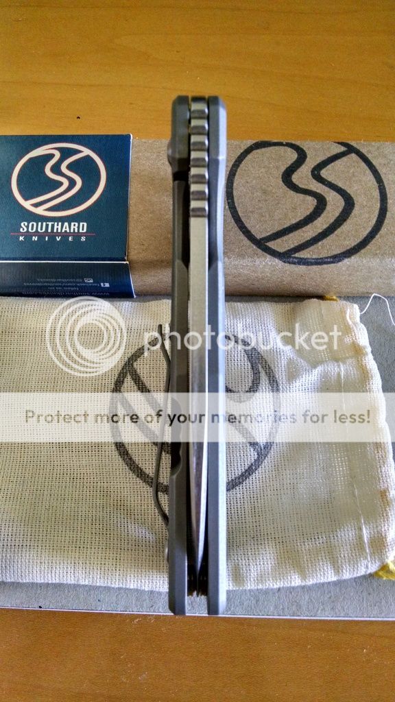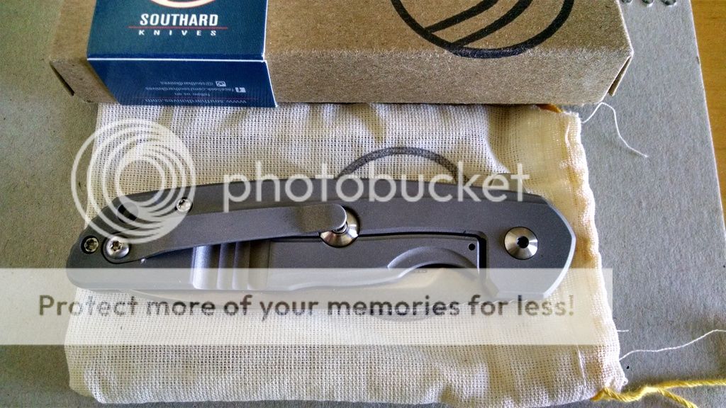 Next up is a LNIB Southard Avo. As soon as I opened up the box I told myself I'd never sell it. Honestly one of the best flippers out there, great fit/finish, and just an all around amazing knife. I will def. be buying another at some point, just priorities are forcing me to sell right now. This one has been carried a handful of times, and used to open a few letters. Original Edge, and very sharp. I can't seem to find any markings, snail trails on it - but maybe a very faint one on the clip if you make yourself have to find something... Early Lockup, strong detent - comes with Box/Pouch. I'm the original owner straight from Southard.