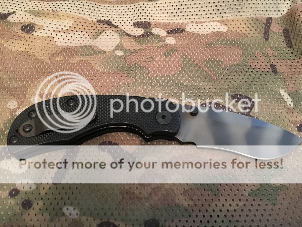Strider RCC knife has a black G10 handle "heat striped" titanium pocket clip S30V was carried has some scuffs on it. has original edge. $235 SOLD