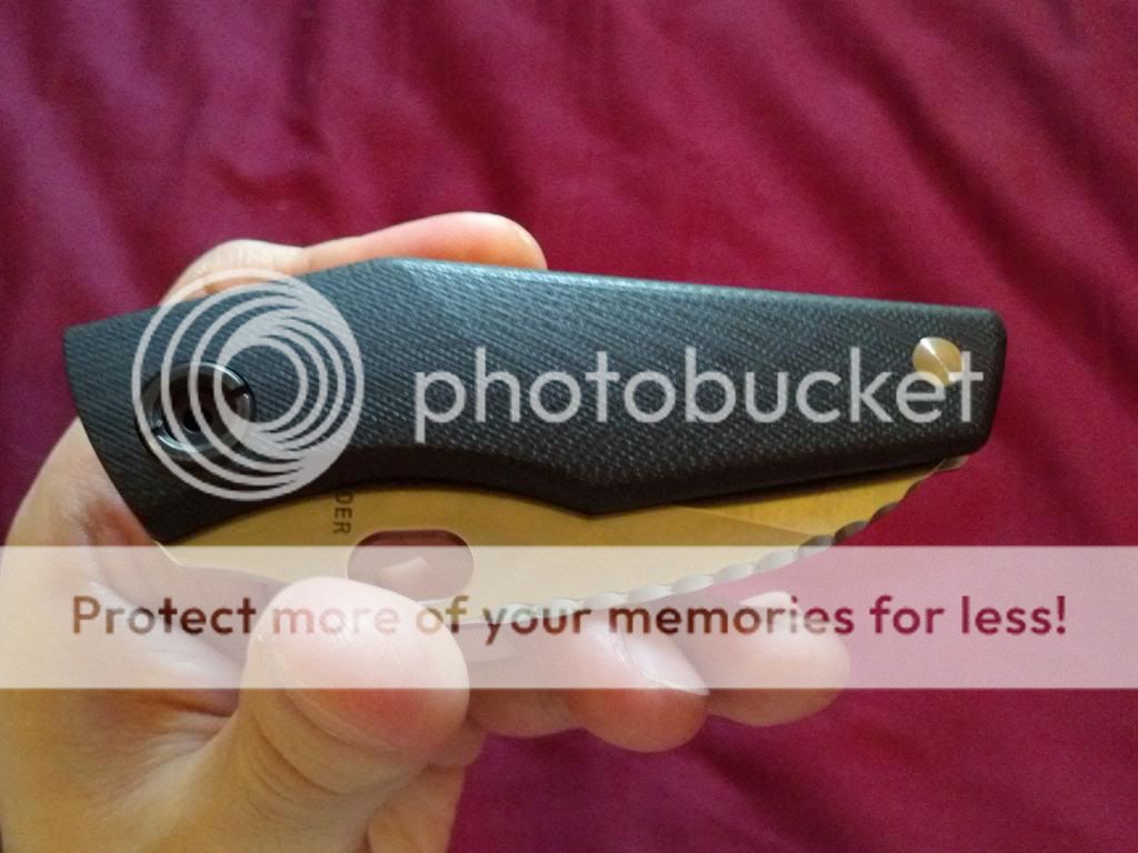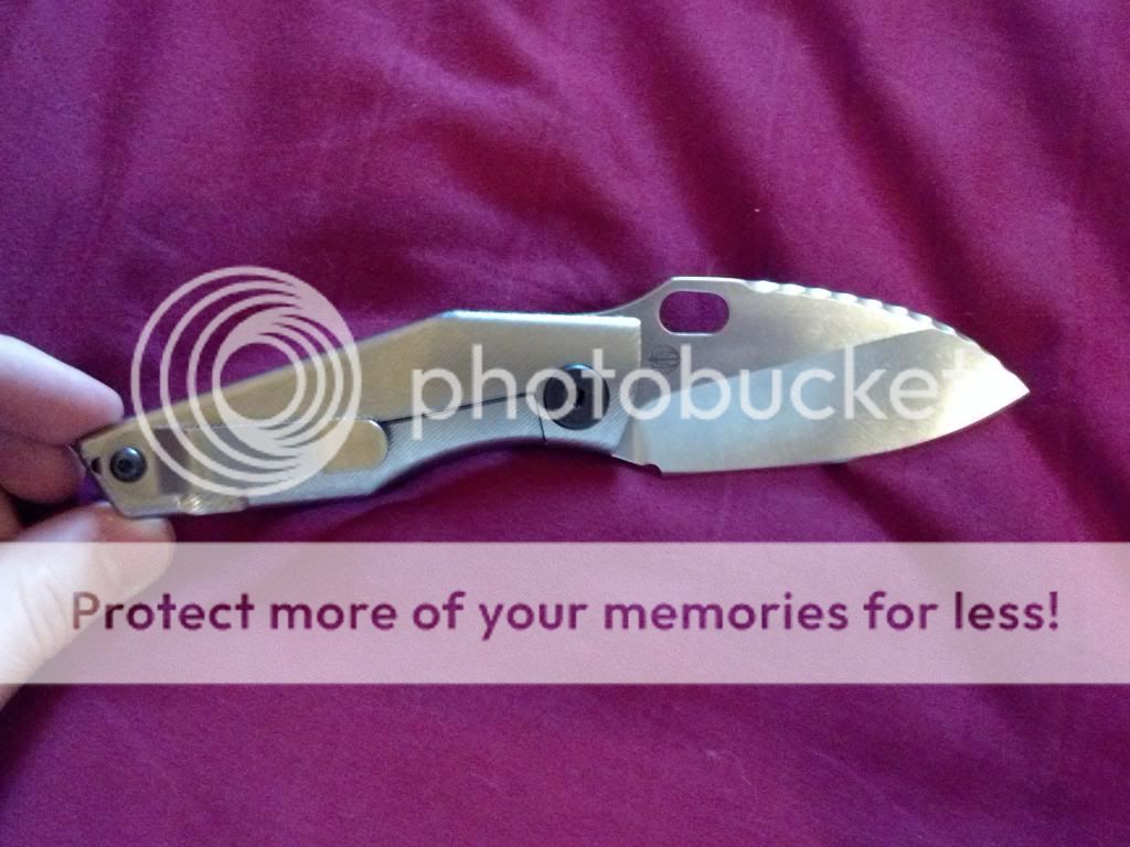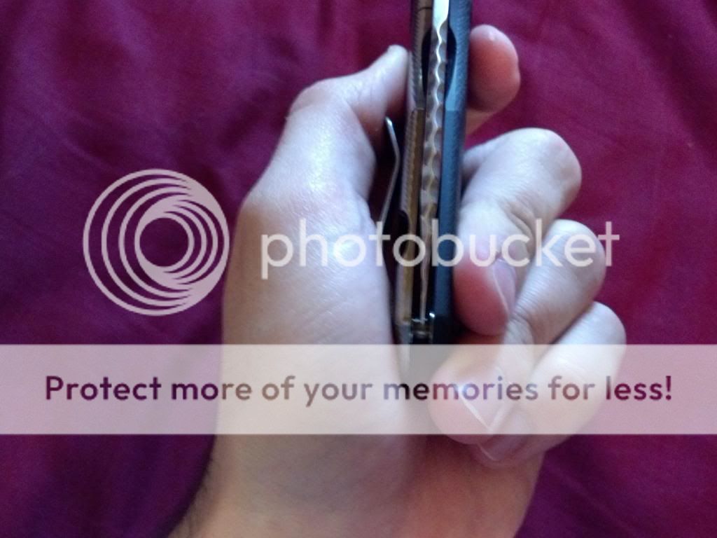 Has been carried and sharpened on the wicked edge to a mirror polish. Slight signs of wear on the Ti scale but very hard to notice. Blade is flawless.