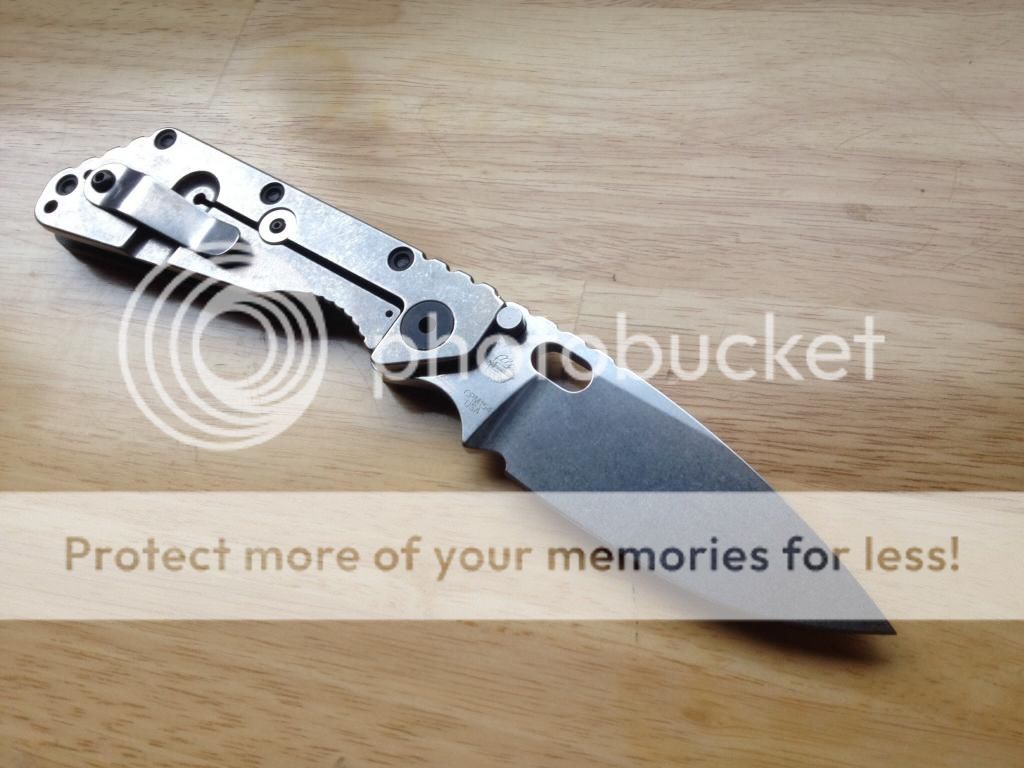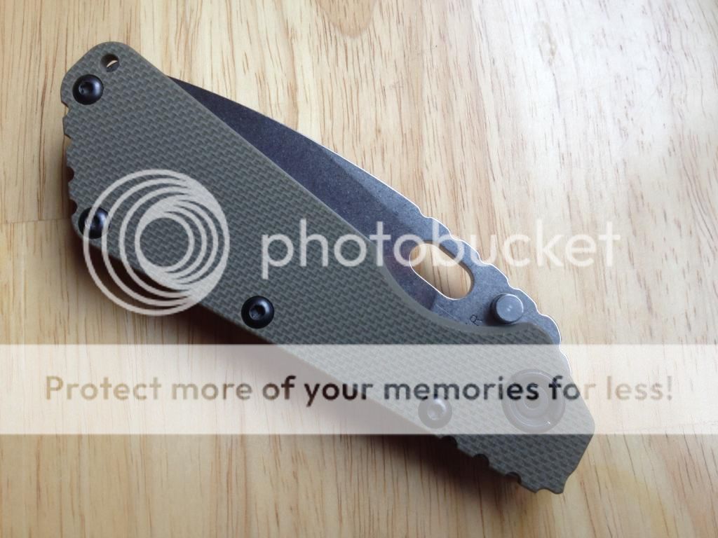 This knife has been lightly used and carried a few times. Lockup is early and rock solid. No blade play in any direction. The action is extremely smooth and the blade is centered perfectly. It has one little rub mark on one of the thumb studs. It has not been sharpened, still has the factory Strider edge. This is a really nice SmF with no problems. $SOLD shipped PayPal. USA only please.