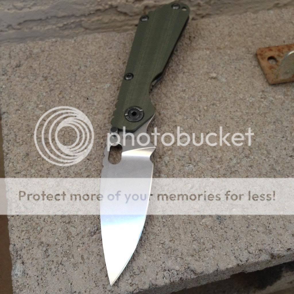 Strider SnG CC, CPM154 steel, RG g10, has been carried and used. Shows some light wear (see pics). Has slight side to side play (I don't have the tool to tighten the pivot), rock solid up and down. Only selling as it doesn't see much pocket time anymore. SOLD