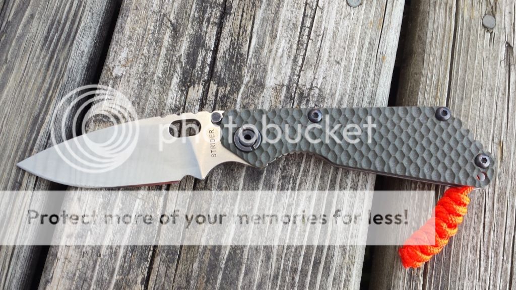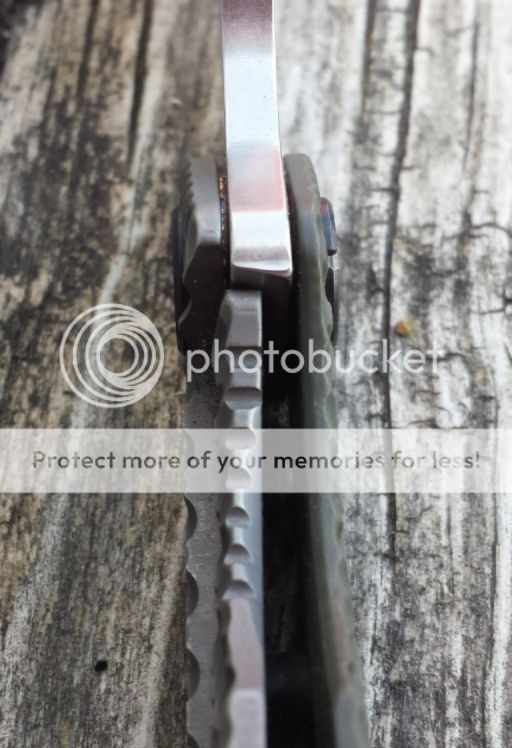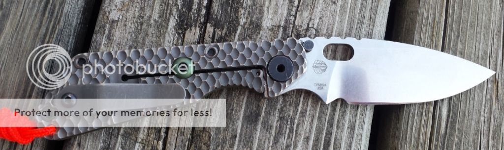 I'm at least the second. It has been sharpened. I only stropped it. I've carried it some, and it has seen some light duty cutting. There are some light scratches on the pocket clip. The blade is a hair to the Ti side. And the lock up is at 45-50%. No movement in the blade. light scuffing on the pivot. This SnG has all sorts of life in it.