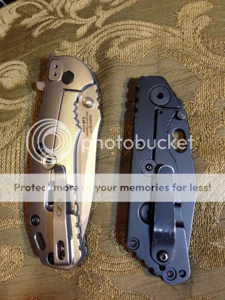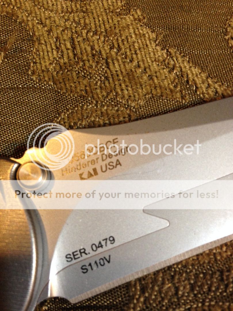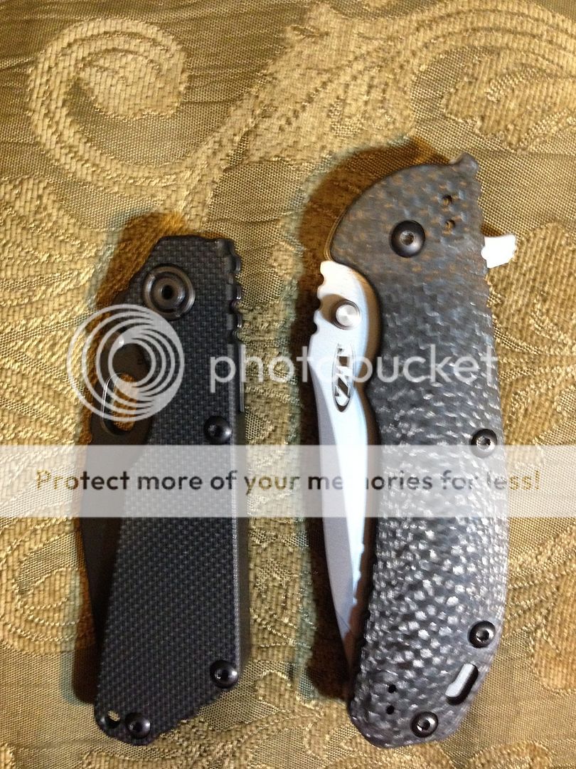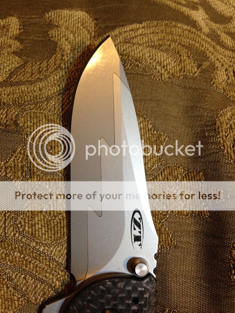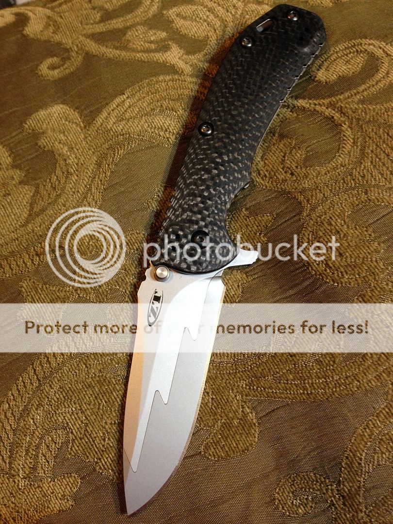 2- SPF SPF SPF ZT0560cbcf - serial 0479 - composite blade (s110v cutting edge- FYI it's just a light coat of oil on the blade that you see in the pics- kind of looks like rust spots but it's just pocket lint in the oil), beautiful carbon fiber scale. Has been carried and used very lightly. Has one light mark on the blade below the "Rick hinderer designs USA" logo but it's very light and hard to see. Have to hold it at different angles- I pictured the best I could. Also has a tiny mark on the bottom of the lock bar stabilizer. Also see that the ZT logo is starting to fade on the clip. Other then thaaaat!! It's a great example!! It's rock solid, perfectly centered, smooth and has a strong detent, locks up around %50. If you like a good strong detent this ones for you. ..thing flips like a rocket! Almost like a custom! But it's almost impossible to use the thumb studs, maybe in time it'll break in more. It's been sharpened on a wicked edge and is hair shaving sharp and ready to work! Comes with box and paperwork.