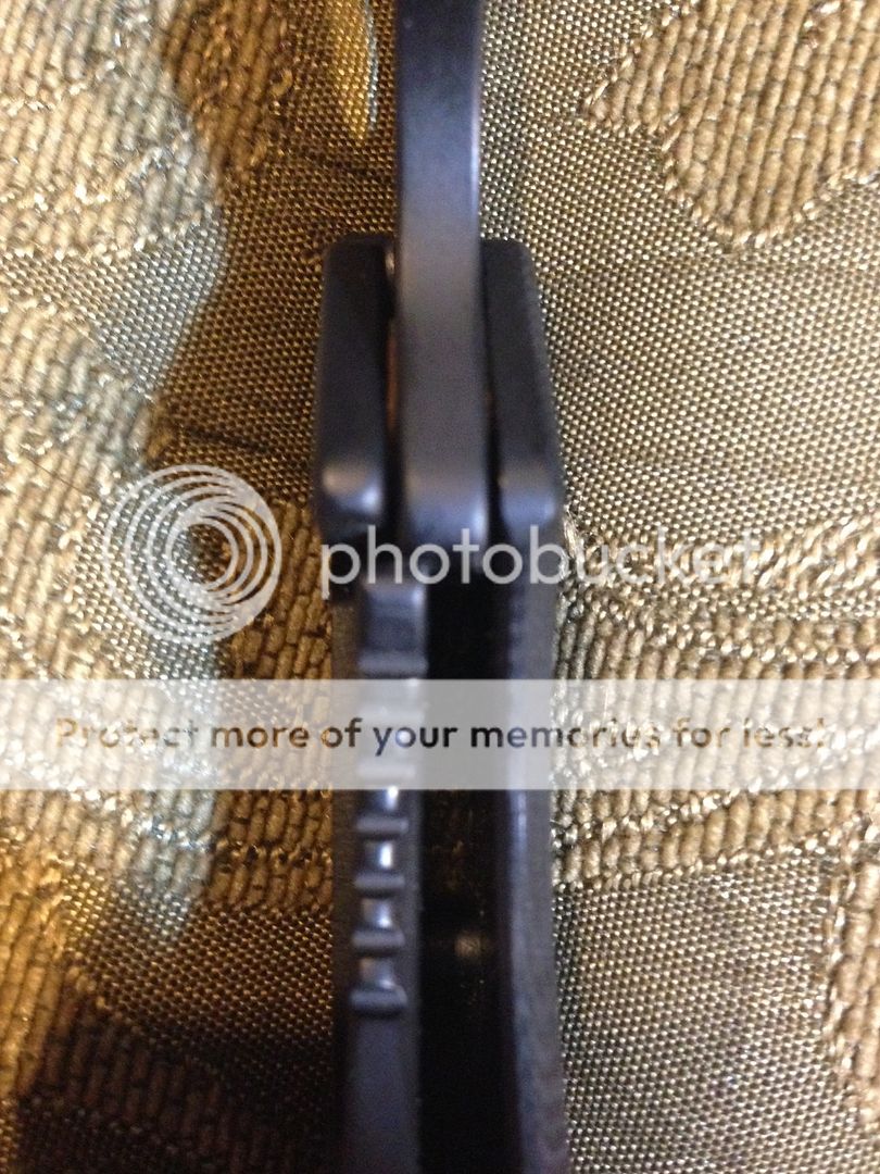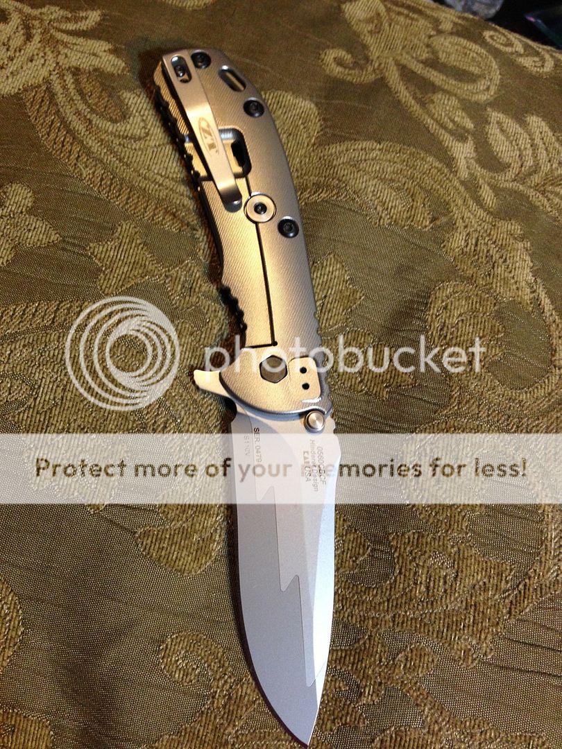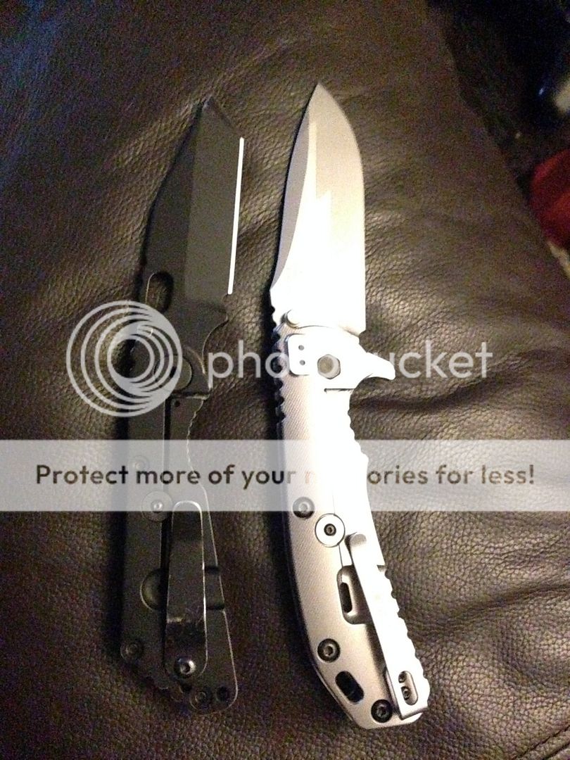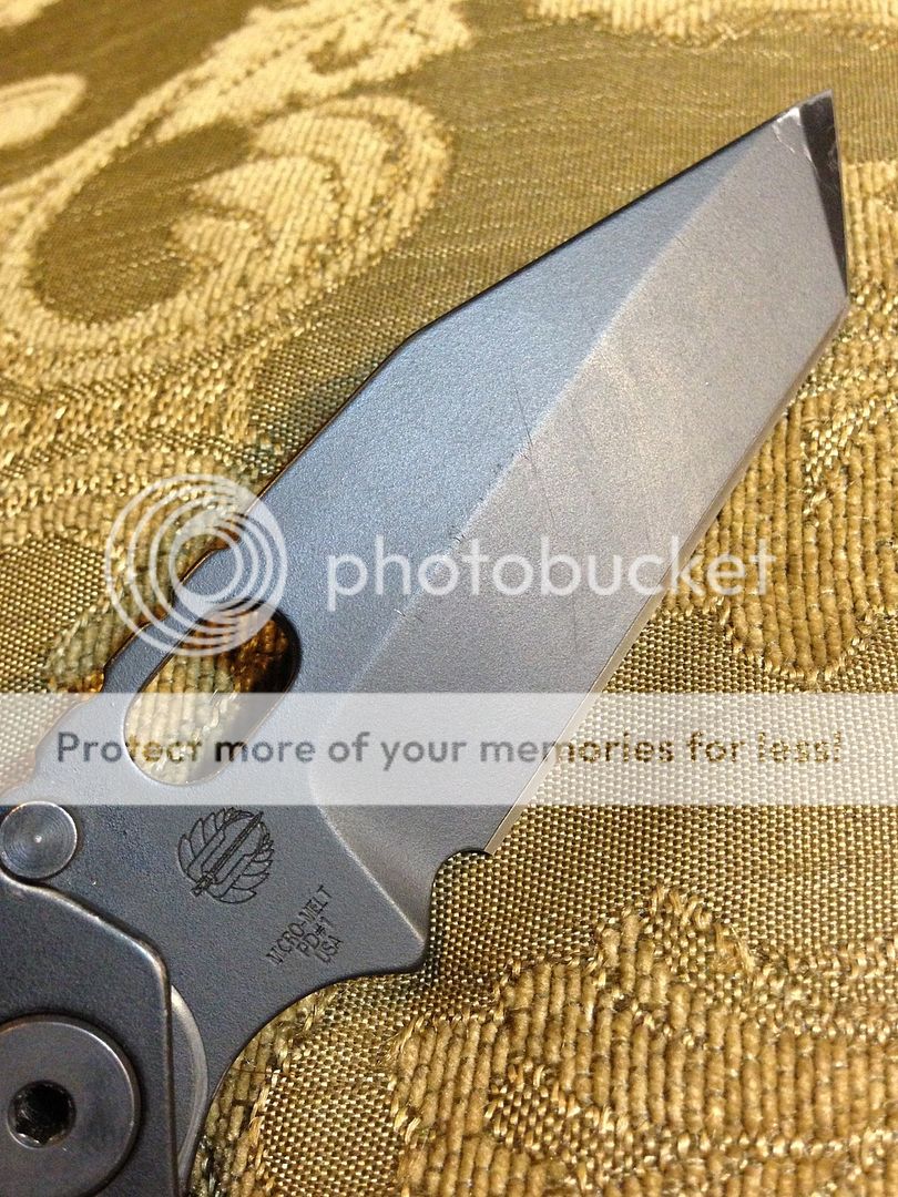 1 - dropped - lowest price $290- don't offer any lower!! Strider Sng Tanto - micro melt pd#1 steel (pd1.. Oh yeah baby!) as you can see it's been carried and shows it. Just got it back from strider , had a full tune up. New washers and hardware, made the lock up earlier, then they sharpened it up. It's paper slicing sharp ready to go! Solid and early lock up. You can adjust the pivot without the special tool and it hasn't come loose on me yet. I have it set a tad loose (you can muscle a tad of blade play) but it's nice and flickable. Again you can adjust it easily and it's still nice and smooth, just not quite as flickable.. and then it will lock up like a fixed blade. Nicely centered. No box (striders don't come with boxes, I do have the zip lock bag though!)