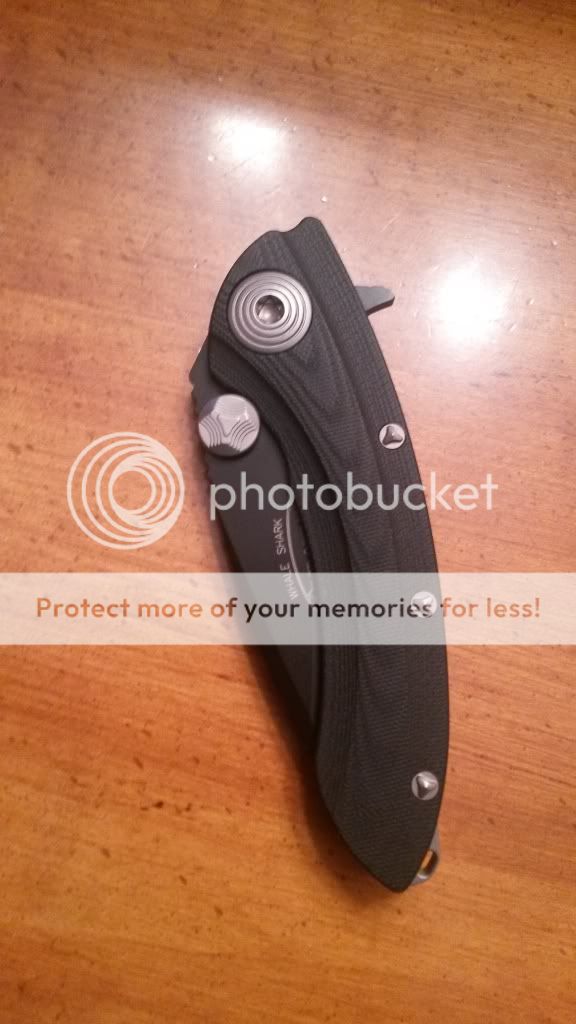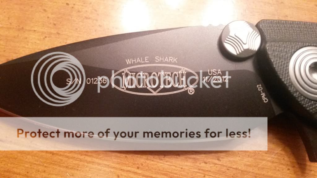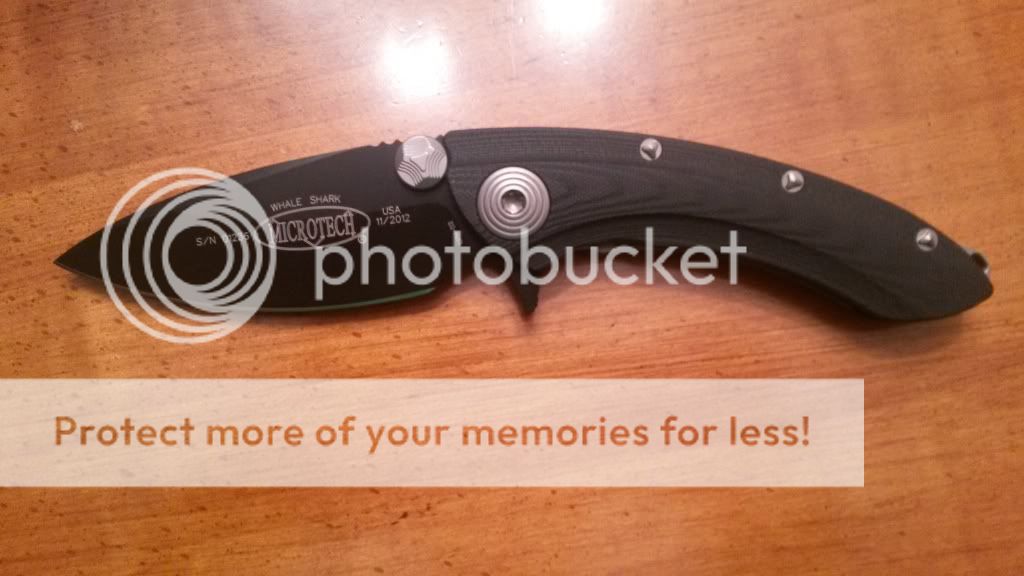Microtech Whaleshark Black coated CPM-D2 blade, I am the second owner, knife is unused but has been in the pocket $295 paypaled, shipped and insured in the USA.