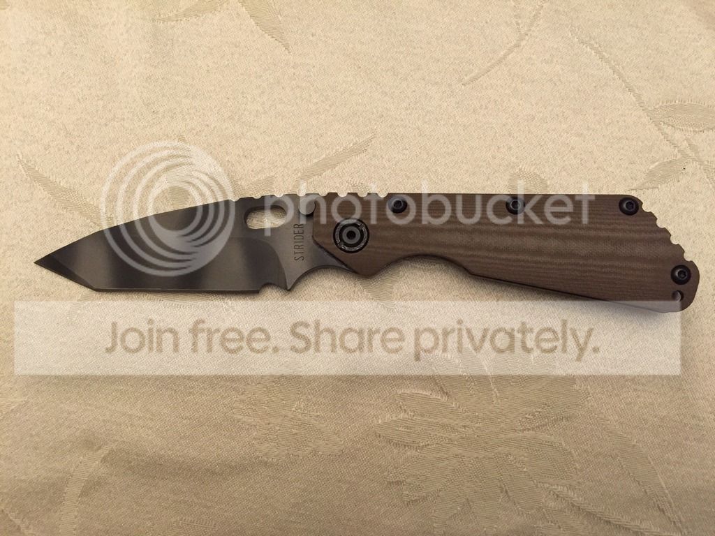 ----Sold----Strider PT is black g10 with rare flamed lock side and black blade. Blade has been stropped and is sharp. Also in excellent condition. Also just sits in the collection as I prefer a larger carry. Needs a home where it sees pocket time.