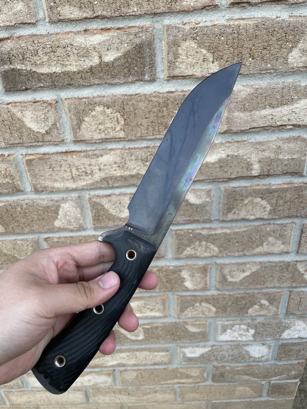 Haven't decided yet if I want to go through with another step of stone washing the blade, since I was hoping to retain as much of the rust resistance properties from coffee darkening as possible.