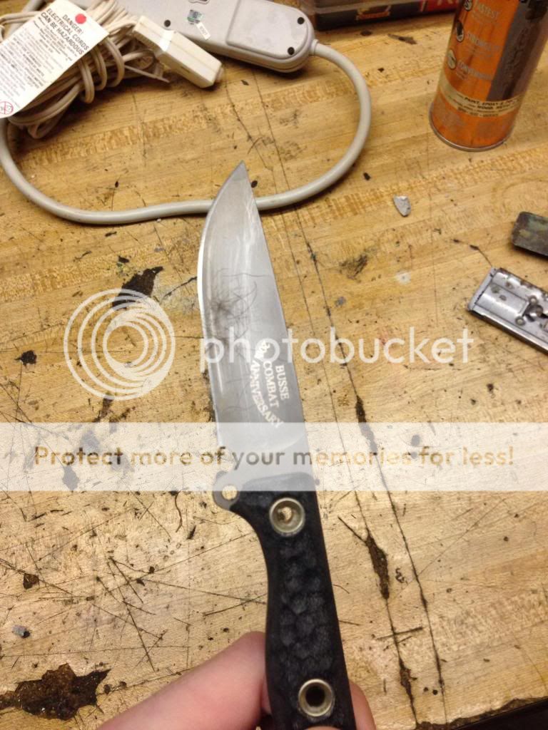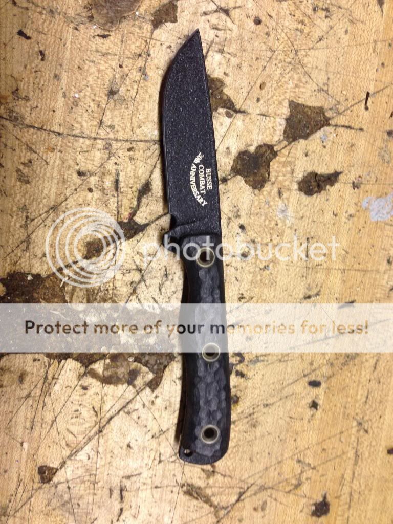 Oh, btw, for years I've wondered if anyone has taken a black finished Busse, and bead blasted away "stripes" to ultimately wind up with camo/tiger stripes on the blade. Has anyone done this to your knowledge?