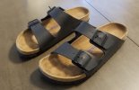 - Men's Birkenstock Arizona. Size: 43 Narrow (Per Birkenstock's website; 43 is US 10 to 10.5 Men's). Black Birko-Flor upper. Unworn. No box. $100 shipped.