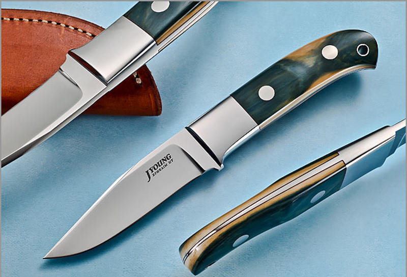 I am selling a fine John Young Utility Hunter, measuring 7 3/4" with 3 3/8" blade; beautiful blue Mammoth ivory scales.