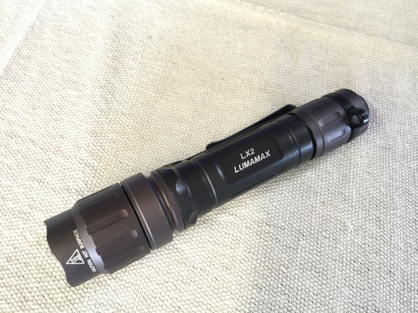 Up for sale is my Surefire LX2 Lumamax. I just don't use it anymore. Light is in very nice condition. It was carried and has a few marks, mainly on the front rear of the light (bezel). Some wear on rubber tailcap. Has batteries, should be fairly fresh. Asking $110 shipped. I can take check, money order, or PayPal, prefer if you cover PP fees. I can ship immediately, likely same day.