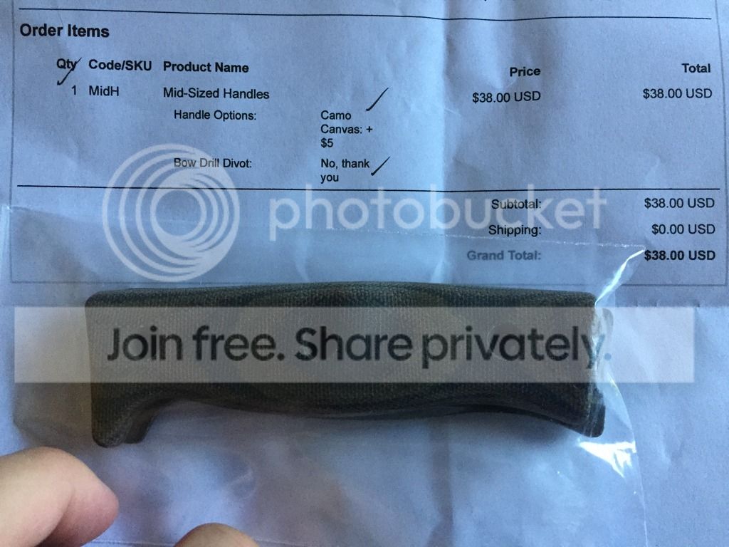 Just got these in today, unfortunately I no longer own a GSO 5.1 so going to pass these along. These are Camo canvas handles for the old style GSO 5.1. Guy will not be making these any longer so here's your chance to snag a pair if you missed the boat before. They do not come with hardware. I haven't even taken them out of the baggy. As you can see they cost me $38, I will pass these along for $sold all in, I'll pay the PP fees and I'll pay for USPS. CONUS only please. You can email me at ddgeorgatos at gmail dot com or PM me following an "I'll take it"