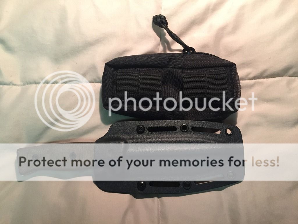 I decided to up my pouch game and give something a try. I ordered a Kifaru GPS pouch with malice style attachment back. I need to get it affixed somehow (shockcord maybe?) Once I figure that out and what all I end up fitting in it I will report back. For now I can say it does really well on the 5 sheath, would be a bit absurd on the 4.1 sheath though.