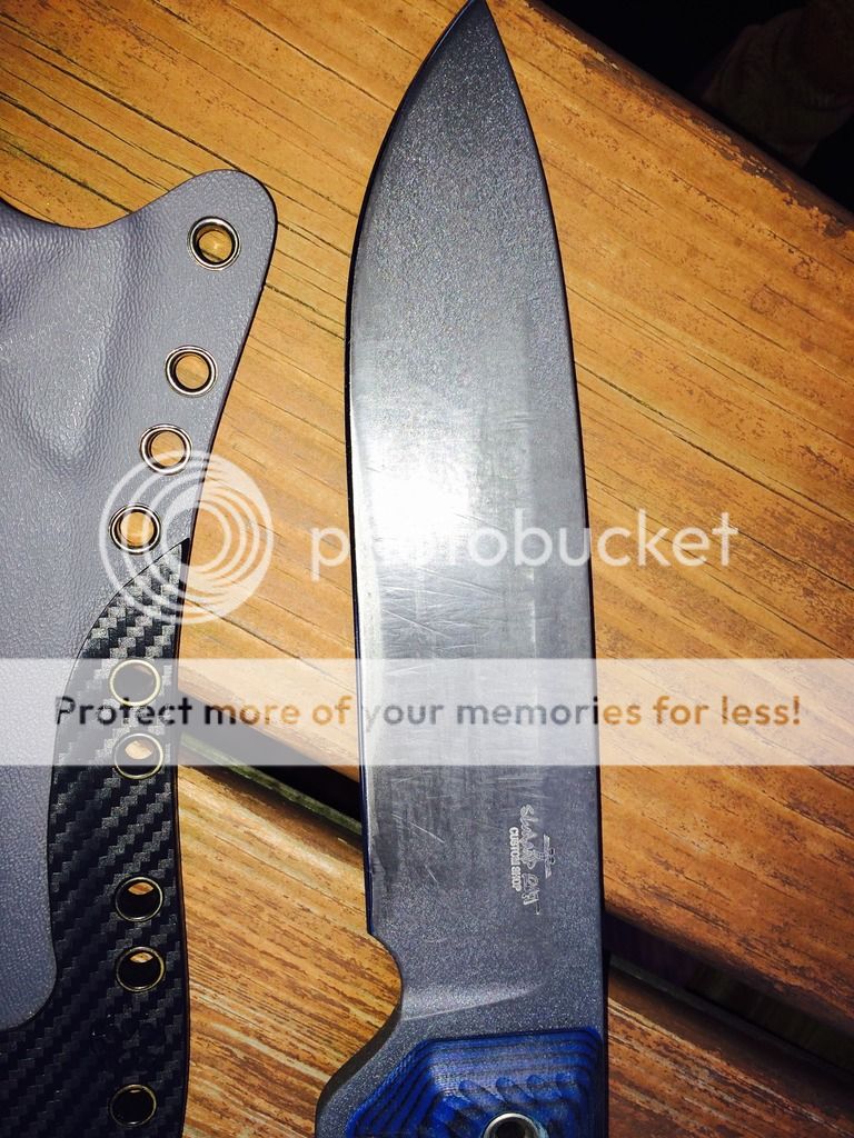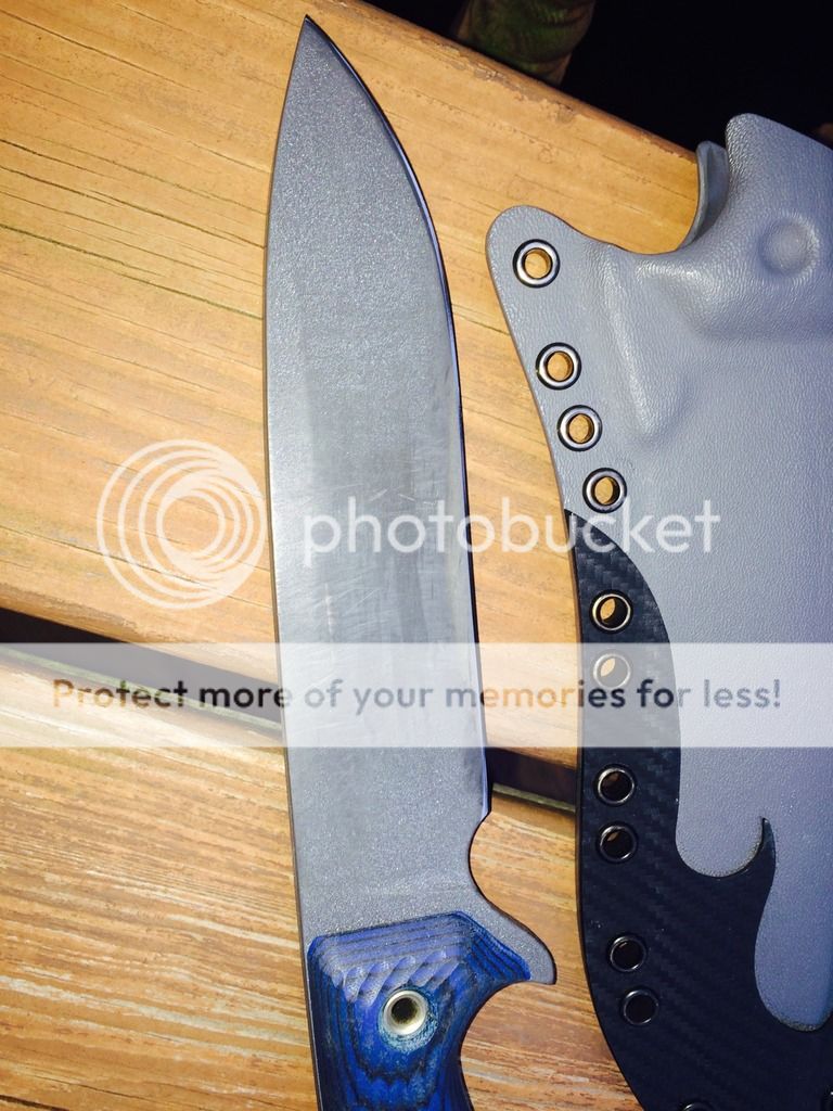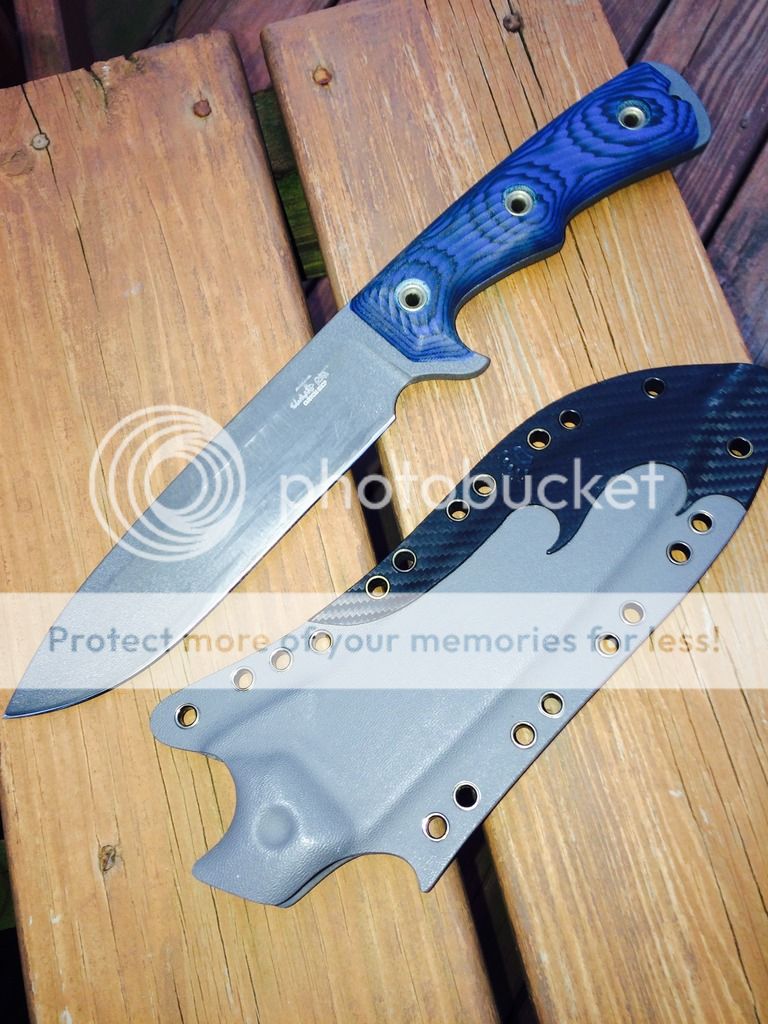 Gonna unload my custom shop Swamp rat Rodent 7 user with finish wear from chopping. Blue and black G10 scales. Comes with a paw paw two-tone Kydex sheath. I just sharpened it and it's right where it needs to be... Sharp enough to just about shave and toothy enough to cut through wood rope or whatever and and minimize dulling. If you want it scary shaving sharp I can make that happen too just lmk. Looking for $275 shipped OBO. That includes PayPal goods and USPS shipping with tracking. Might consider trades but only if it's for Busse or Swamp rat 3-6". Good on scrapyards at the moment. Not interested in any other brands.