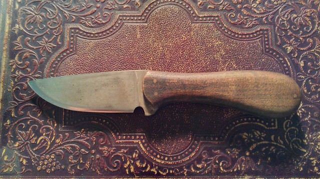 I originally traded for this knife on this forum. I stripped it, handled it, convexed it, and forced a patina on it. It has been my sometimes-EDC for a while, but I've decided I just don't like the steel. While it holds a sharp edge very well, when it's time to sharpen it, I just don't like putting the time in to get it right. If I were better at sharpening on my 1x30 harbor freight chinagrinder, I'd keep it, but I'm not. I just don't have the patience to sharpen such hard steel by hand.