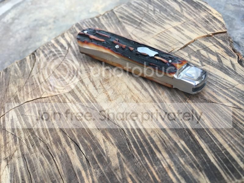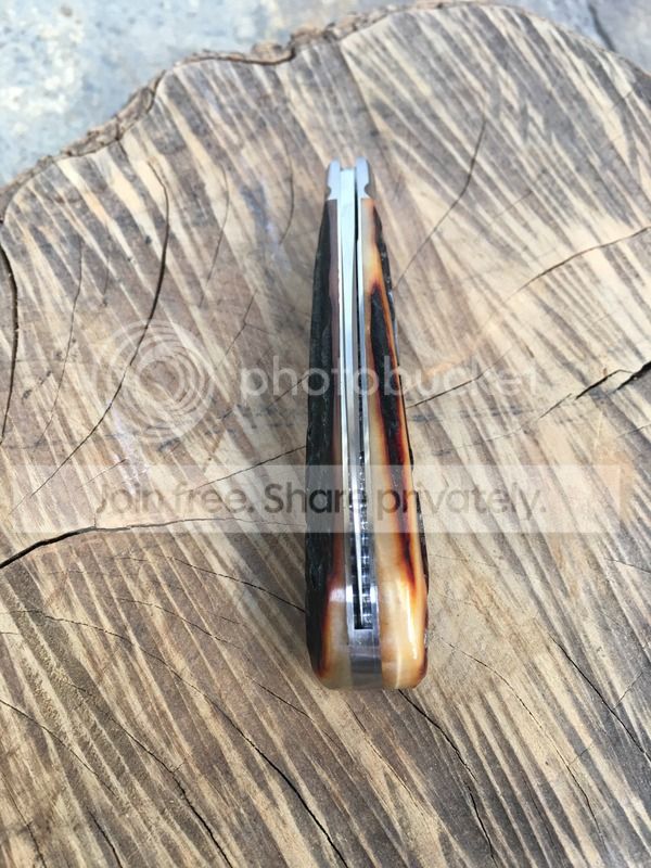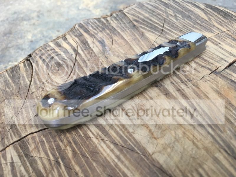 4. #652 single spear blade with oiled rams horn covers. 3 3/4 closed