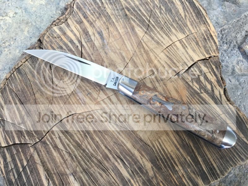 3. #661 single wharncliffe blade and spalted maple burl covers. 3 7/8 closed.
