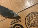 Tactical Pterodactyl one off (?) full size wharnecliffe in Cru-Wear. It’s pretty thin and light. Good overall condition. 7.5” OAL, 3” cutting edge, roughly 7/64 thick blade stock. $175