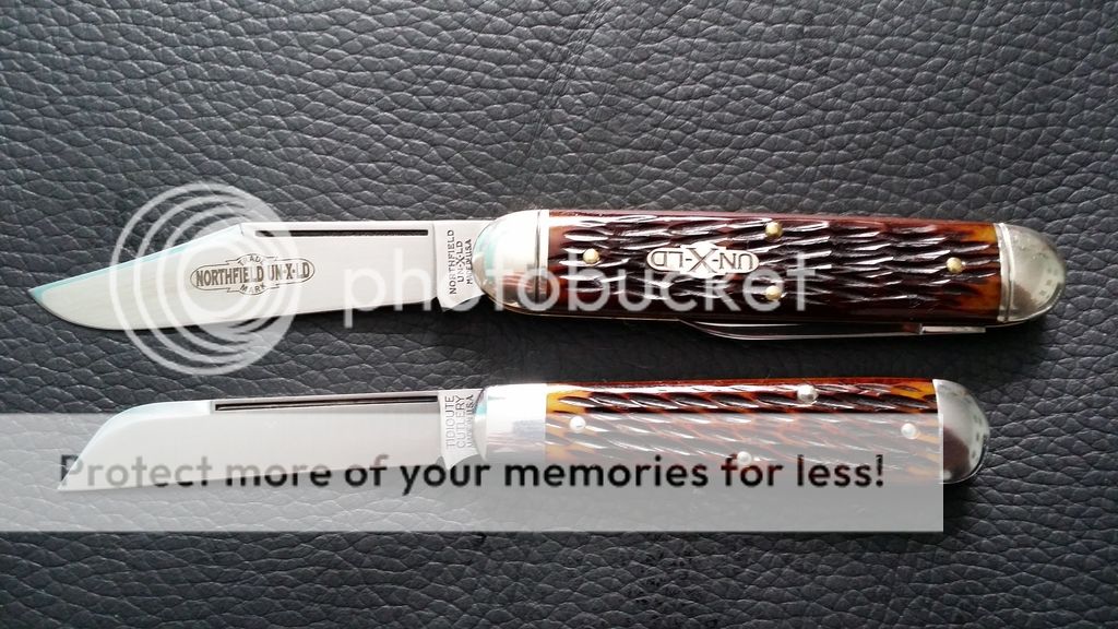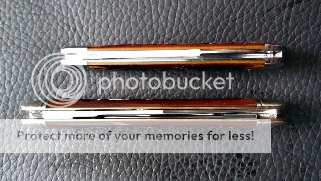 Now, on to the 53 Cuban! I chose the TK because I wanted a slim knife that felt good in hand and this one does not disappoint. I believe I found the last copperhead jig bone model from the dealers. The jigging on this one is a little sharp here and there but I presume that would wear off with pocket wear. The pull is a nice 5-6.... much lighter than the 54's bear trap springs.