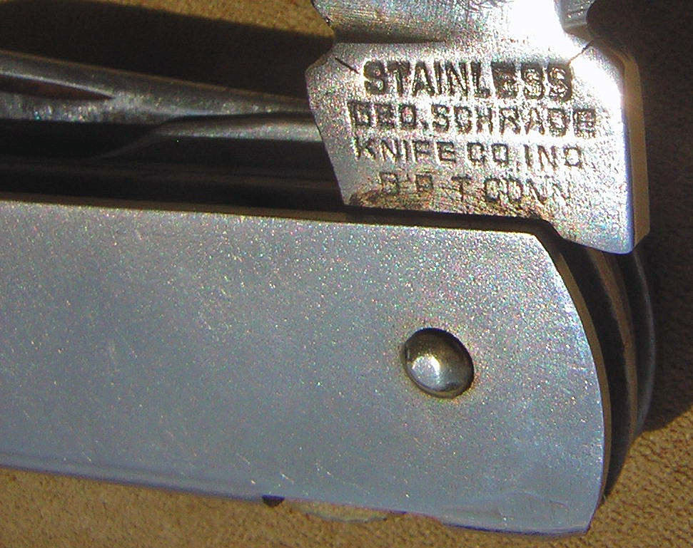 This is a vintage Geo. Schrade Camper model. Notice cracking of the main blade at the tang: