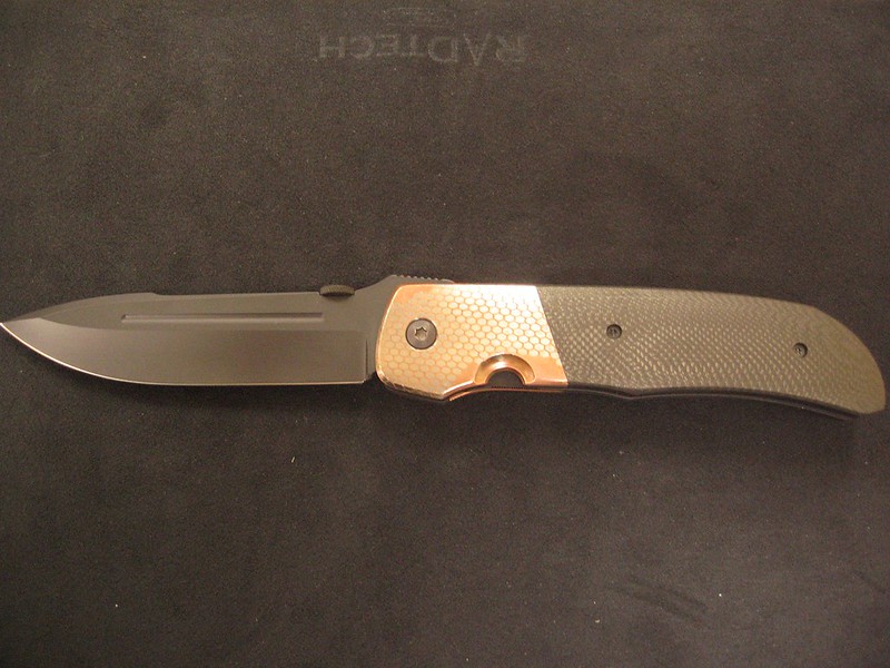 1) Terzuola Eagle Rock with superconductor bolsters and copper back spacer. This knife has been carried twice, has never been used to cut, and is in 98+% condition (see pictures of clip to see marks). $SOLD