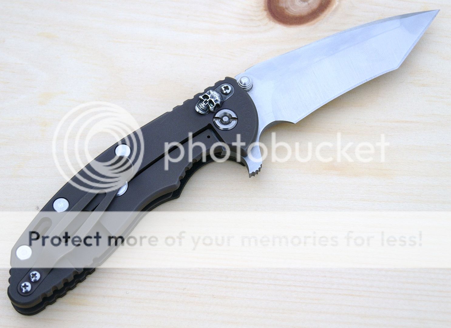 A Hinderer Hellfire, one of my favorite grinds from Rick!! Action is very smooth, lock up is tight. Has a carbon fiber scale and will come with a orange frag scale as well. It has a very rare Tritium eye Steel Flame filler skull, just an amazing job Steel Flame did on those. I do not have the original filler tab though.