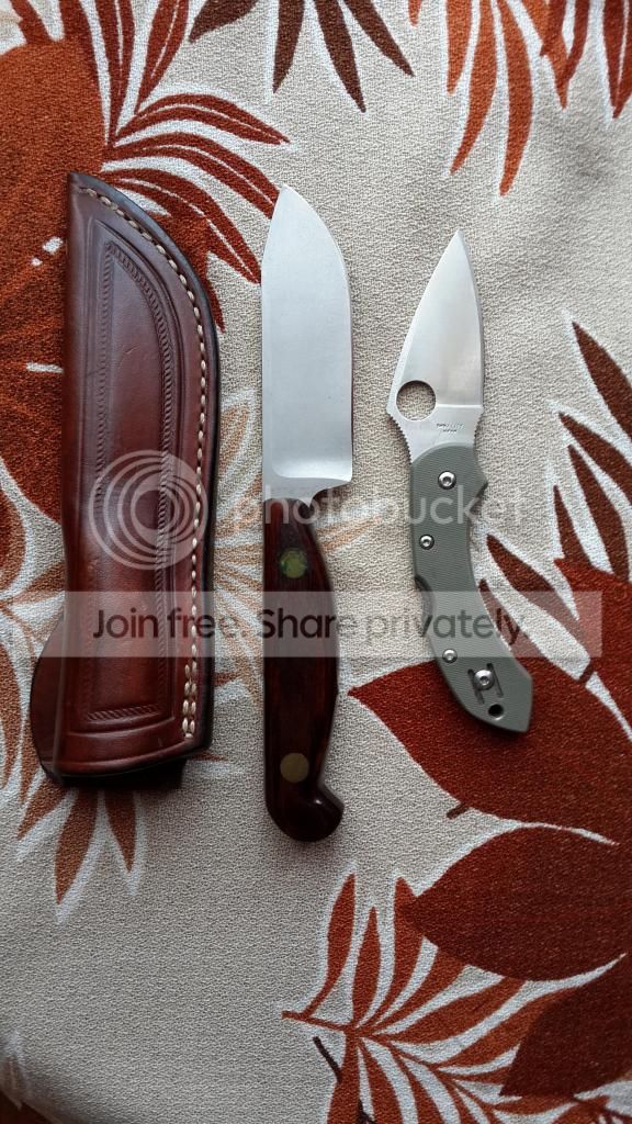 tg2705 has joined BF. Welcome. I have a D2 high hollow ground skinner he made about 30 years ago when I first met him. The knife has skinned a quite few deer over time and has been a perfect companion. It holds an edge for a long time and has not rusted on me. The edge is very thin so it cuts really, really well. I had a sheath custom made by Ken Campbell of KC leather (now passed on) so the sheath is newer than the knife. The old sheath I had wore out and was not nearly as nice. The knife is the perfect size for whitetail deer and really takes the hide off.