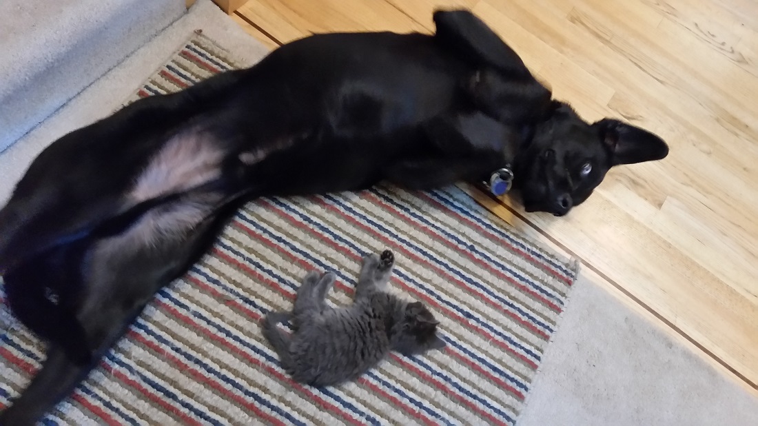 And just for cute... My big buddy just got a little sister. He's got a very strong prey instinct and it took me about 4 hrs to convince him she wasn't another field rat. By the end of the day, they were best of friends... inseparable.