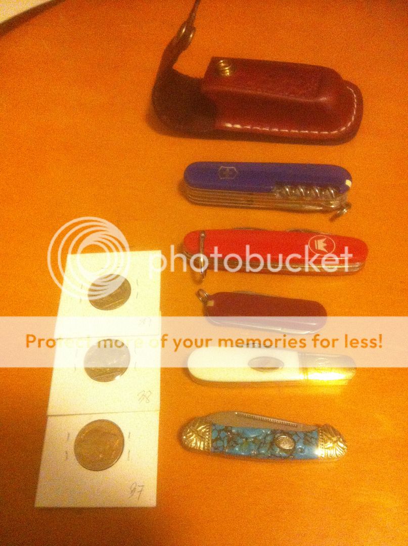 Well, little did I know when the package arrived that there would be more than just the one knife in there, in fact, there were seven! And three 1930's 5c pieces!