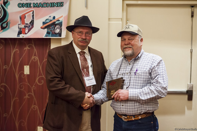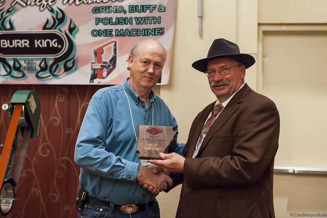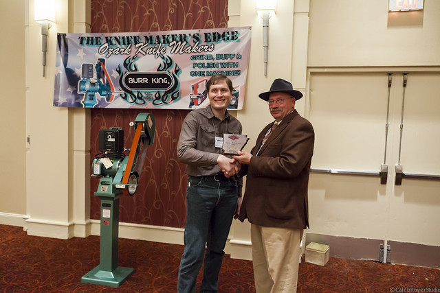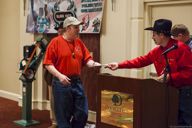 The 2012 knife show in Little Rock, Arkansas held this past weekend was the best one yet, IMHO. Saturday the show was incredible full of people, one could barely walk through some of the isles because of the number of people there! It was great seeing many of you there and also meeting some people that I had not previously met. The Banquet held Friday night was PACKED! The food was really good and the company was awesome, not to mention all the incredible knives that come to mind. They were giving away door prizes Friday night at the banquet and I was surprised to have my name called, I headed to the front and picked up the prize and found it to be a knife sharpener. From now on anyone who gets one of my knives will be able to receive it sharpened!