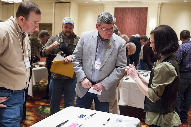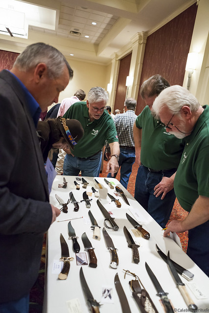 Without further adieu, here are some knife pictures my brother Caleb took of the banquet and show. Next year Caleb will take his camera to the dinner by Jon Klein on Saturday so you all can see what that was like too! Enjoy!