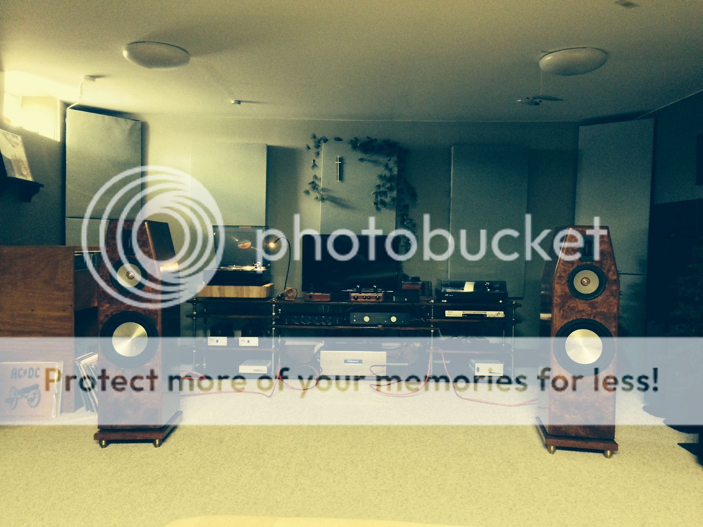 Vinyl on a good turntable has a nice warm and real sound. I miss it. Those speakers look really nice too, what kind are they? What do you have driving them back there?