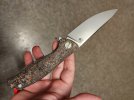 Well I can damn sure say that I’m keeping mine! Holy cow this CF really has a lot going on depending how you hold it and what the lighting is like, mine has a fantastic mix of all colors and the bronze pieces all have a nice golden hue in the light and a darker antique look in the shade that doesn’t appear to be different from piece to piece. I’m really happy I decided to get this knife, everything about it is excellent and for those wondering, I weighed it without the bead and lanyard, 4.8oz.