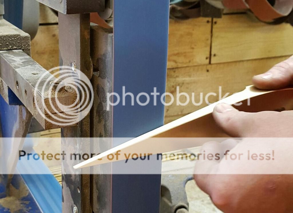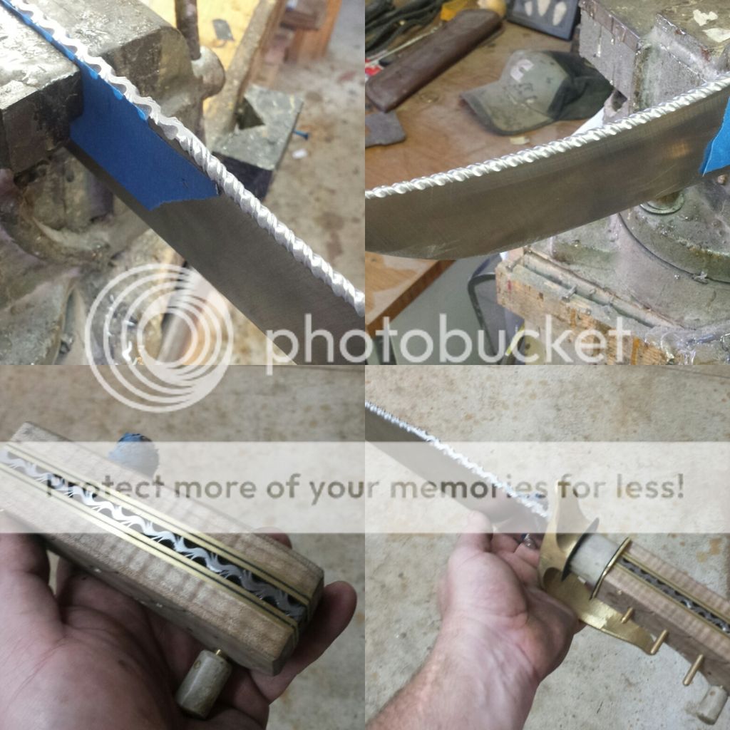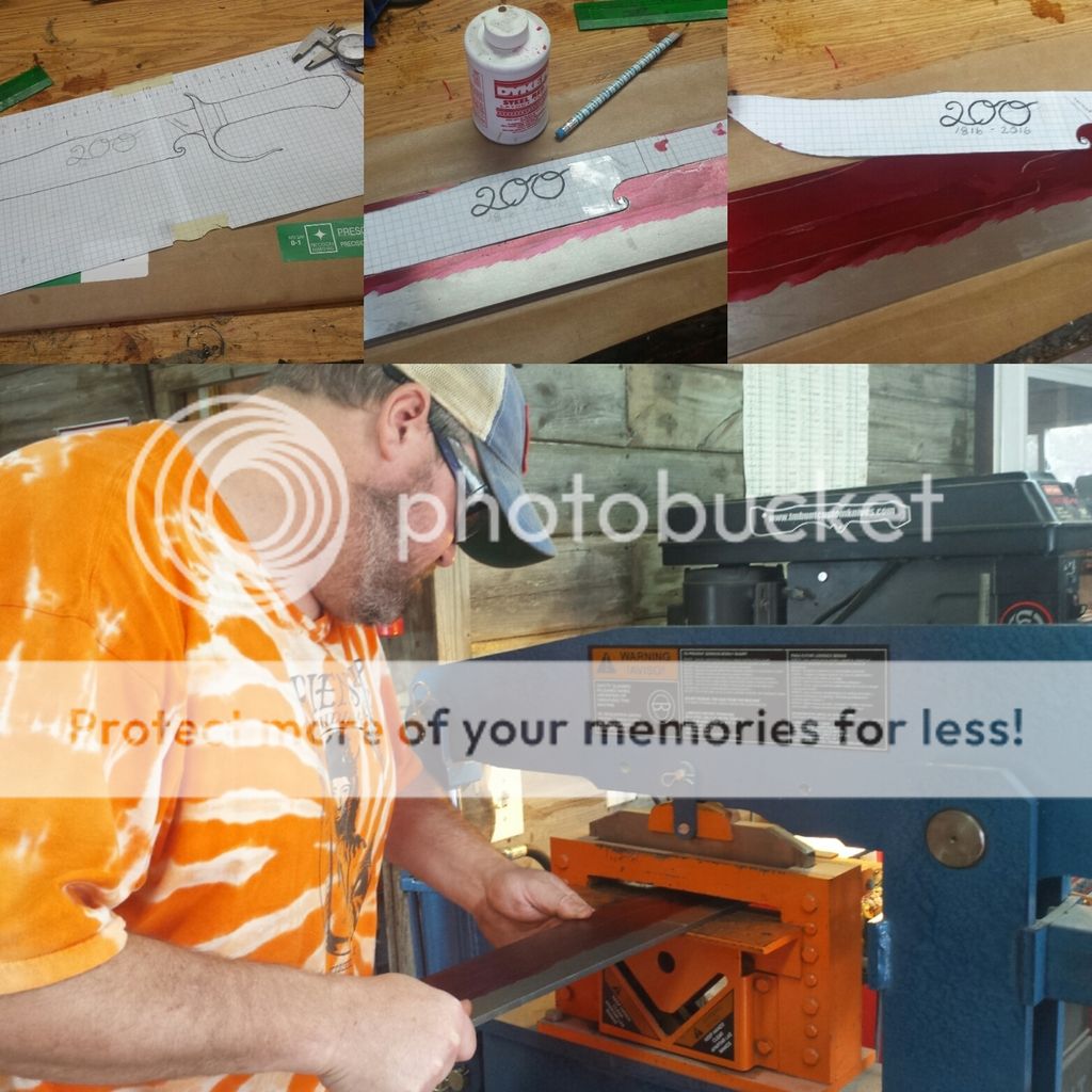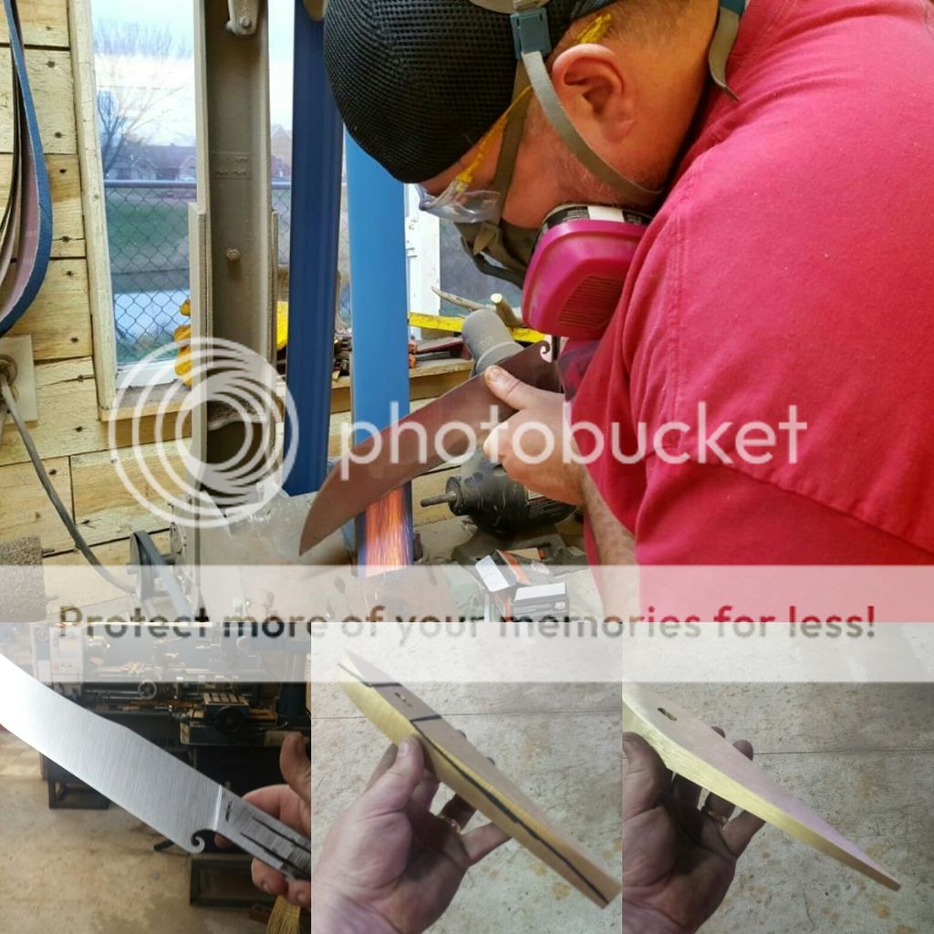 Some things where going on simultaneously, I didn't have a lot of time to knock this out, so Murph quickly got his creative wings on and i threw him headfirst into a complex project....... He did jist fine. Here I'm grinding the blade while he no dought has the bad end of the deal rough cutting stock.