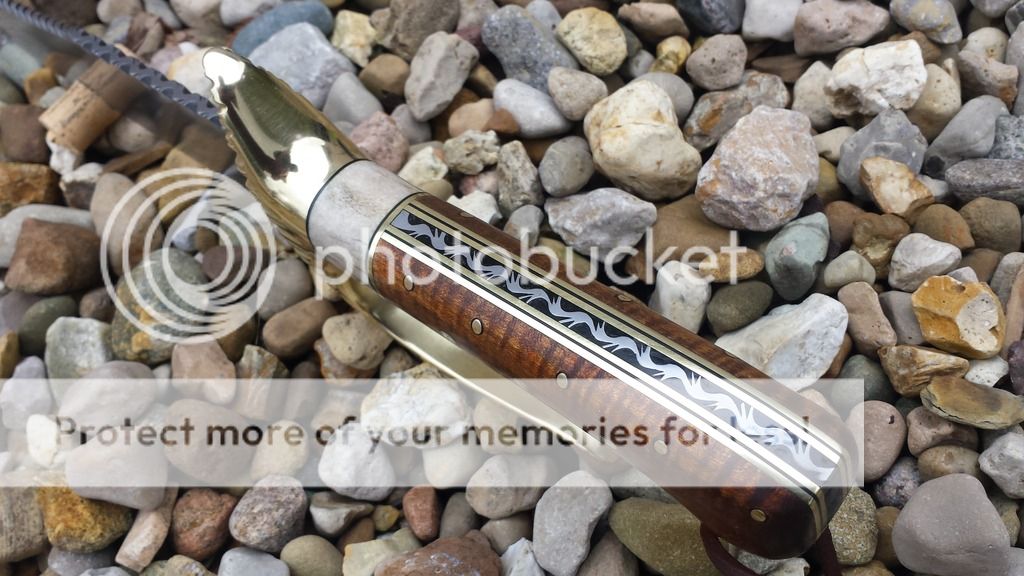 It's starting to look like something now, but at this point I got discouraged. I was convinced I picked out a premium piece of curly maple. But you really dont know what your gonna get until you finish it out. Not only did this not take the color like I wanted, but the curl in the wood wasnt a obvious as I like. Only one thing to do. Sand it all back down and start over with different dye mixtures. I stopped here for a few weeks. Decided to step away and come back fresh later with a better attitude. Sometimes in my line of work, frustration is a sure sign that it's time to step away so the project doesnt end up in the bottom of the pond in a fit of rage...... Lol, and in case your wondering, yes, there are a few T.M.Hunt knives rotting away in the bottom of the pond in my back yard!