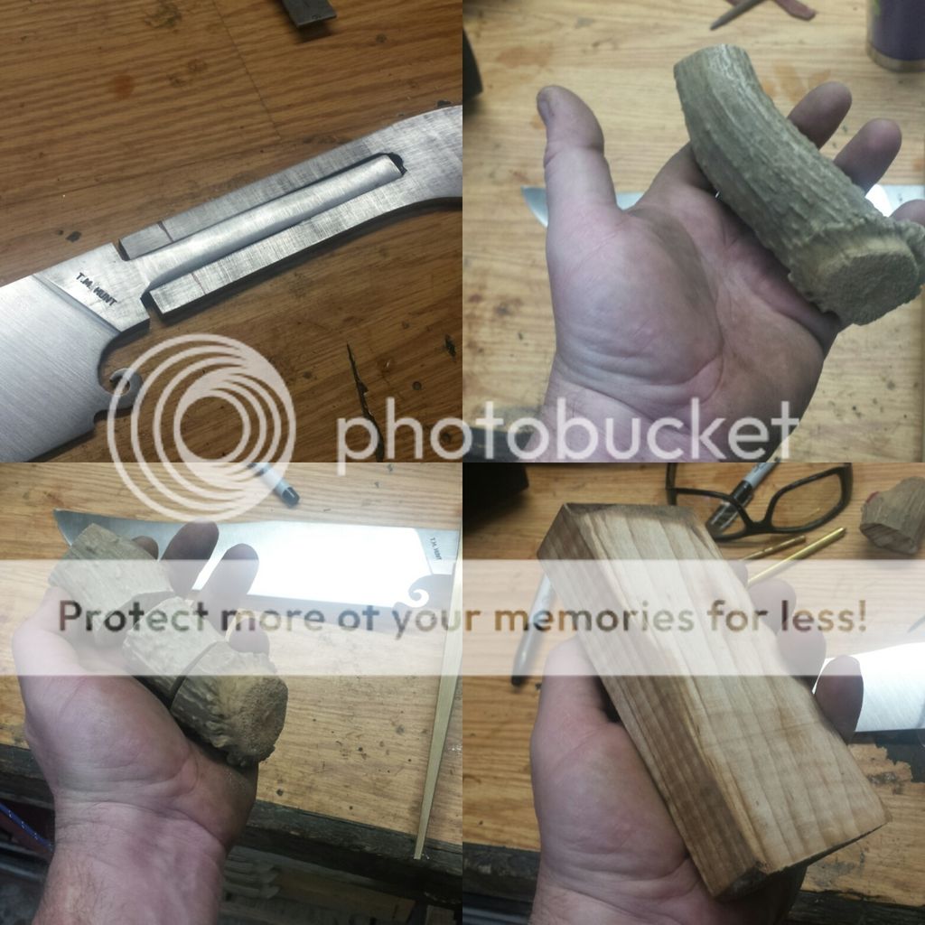 Cutting the tang piece and choosing material that is native to the area. White tail deer and maple wood.