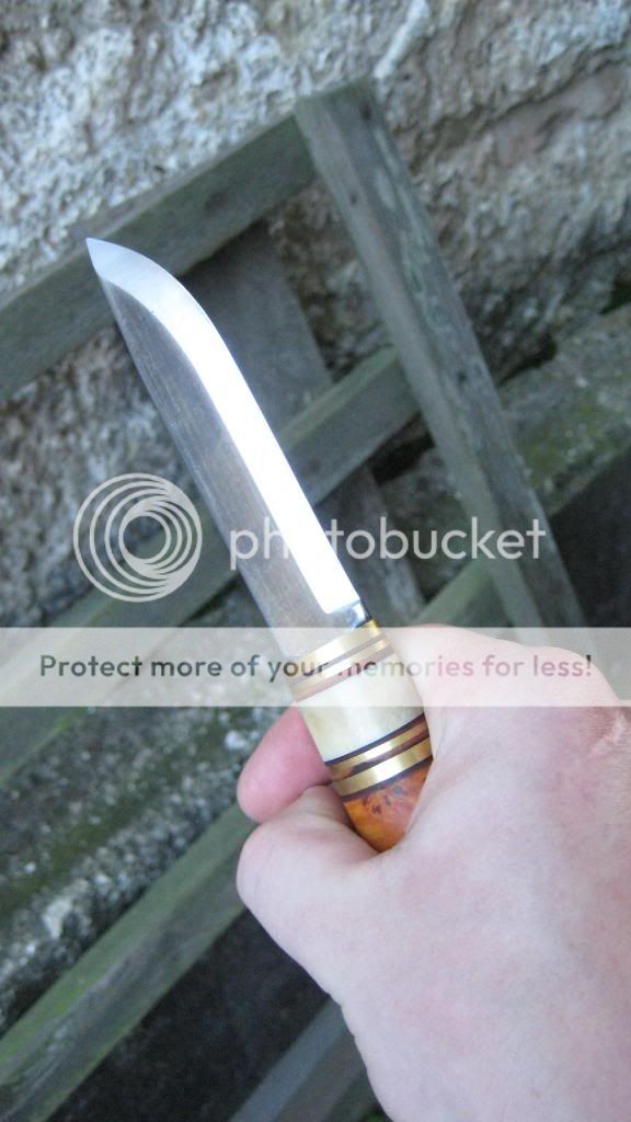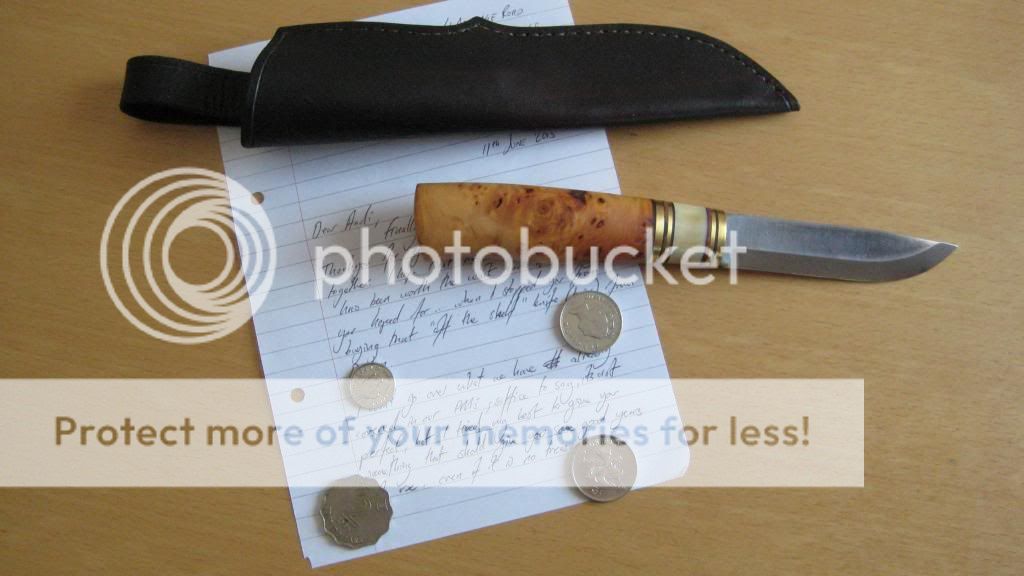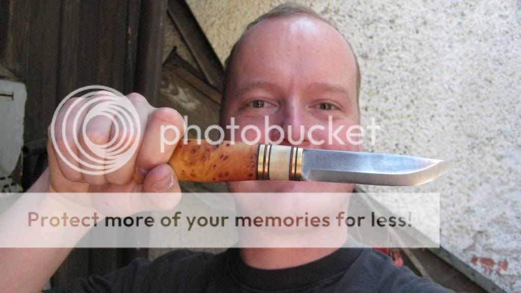as you knew out of this thread http://www.bladeforums.com/forums/showthread.php/1057949-Fixed-Traditional-Brukskniv-Builld scruffuk (Thom) was building me a fixed blade. It is a scandinavian style fixed blade but no Puukko, Puukko used to be only Finish made but this one has a blade from Sweden and is made in the UK. It arrived today, just about one hour ago. I was just sitting in my mum´s shop and we were drinking coffee while nice girl from the postal service brought me the package.