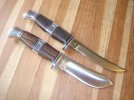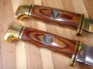 Looking at the pommel and guard...pommel looks to be brass and the spacers on the guard, brass and aluminum. Build out or custom re-handle...JMHO. PrestonHere is a Model 120 General in Lignam Vitae and 440C and a modified Model 560 with an S-110-V blade.