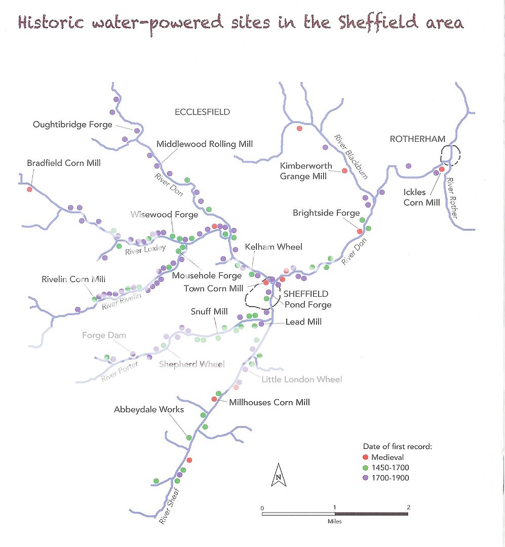 Sheffield has five main rivers, and a number of smaller, but significant, streams and brooks. Only the River Don has any particular width for any of its length, and even the Don, when it enters Sheffield, can be so shallow as to allow it to be crossed easily. Most of the other rivers can be leaped across for much of their length. Yet, it was these fast-flowing streams and rivers, running down from the local hills, which originally gave Sheffield the power to produce knives of world-renown.