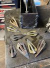 The plan is to put the broadheads in a canister, but that'll be kind of boring by itself, just some flecks or lines in a sea of gray. So to make it interesting, I'm putting in a 15n20 arrow. I'll fill the space around the arrow with the heads. Although it may be fine, I don't want the cutting edge to be can steel, so I'm going to try and laminate some twist bars to make kind of a "picture window." It won't be near as complex as the Battleship piece, but that last weld setup will be interesting.