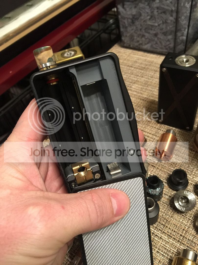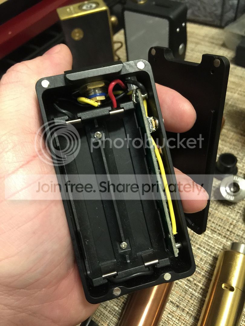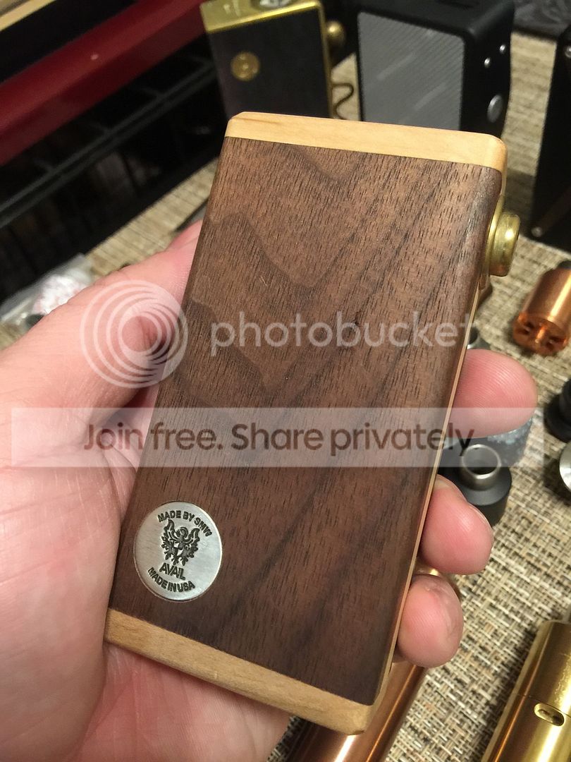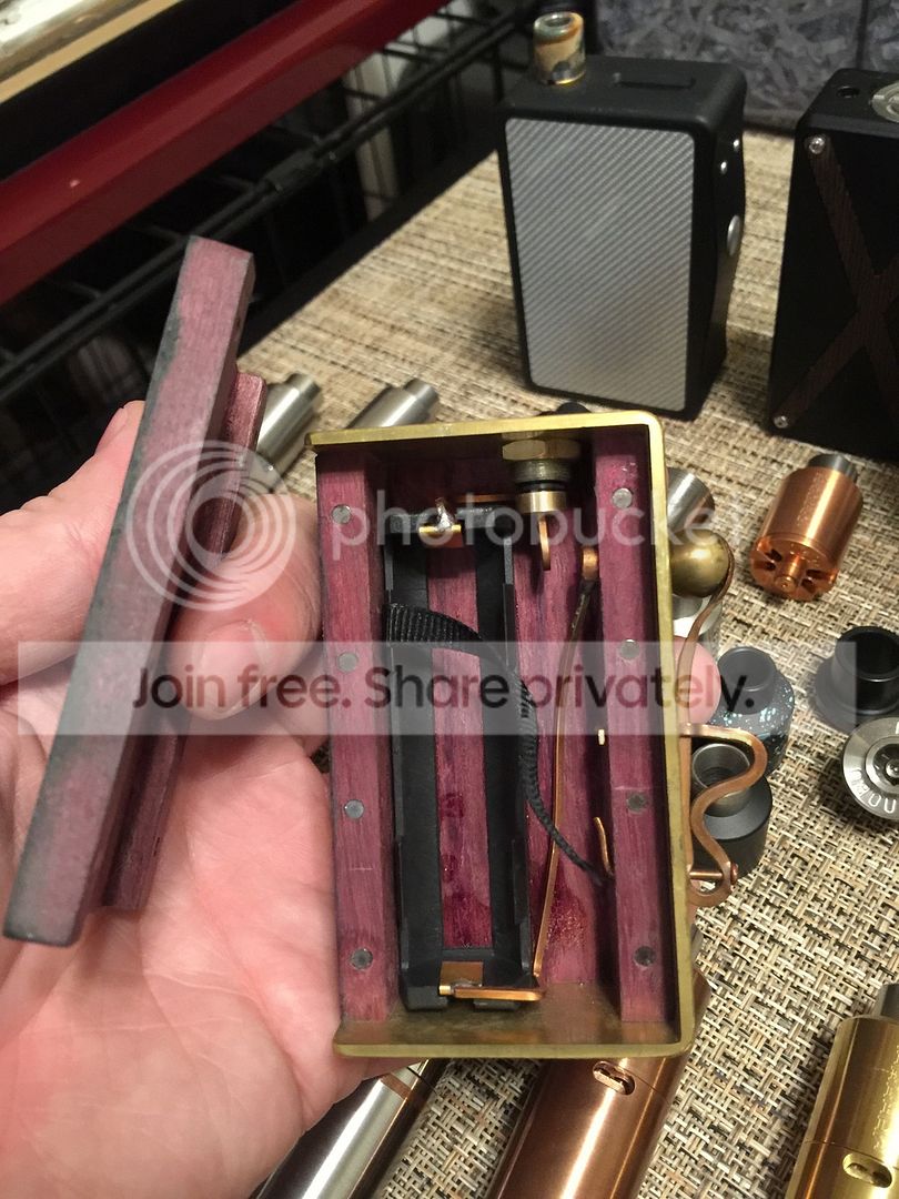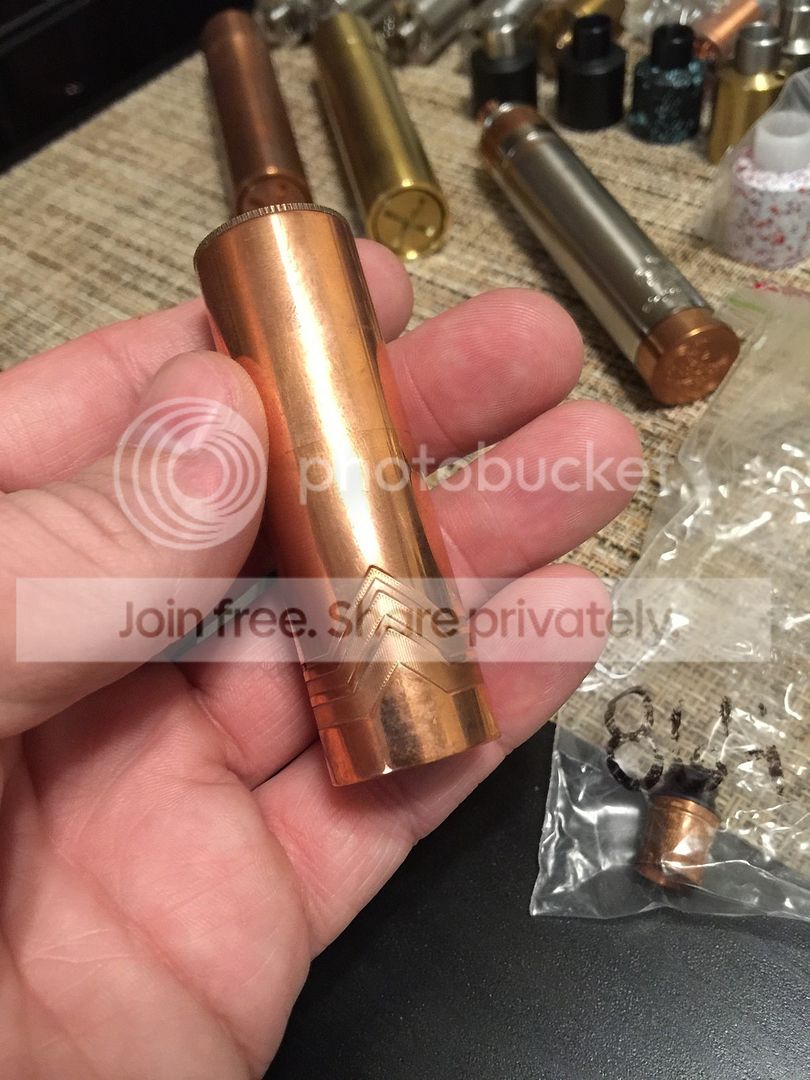 Brass TVL 18650 mod SN #100. This has never been used, however it has some greenish rust going on and I was not able to unscrew the top cap by hand. Don't want to mess with it. - $25