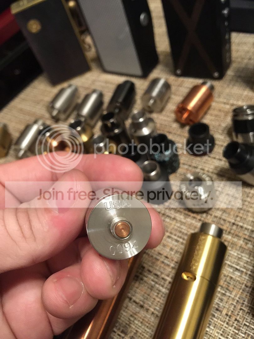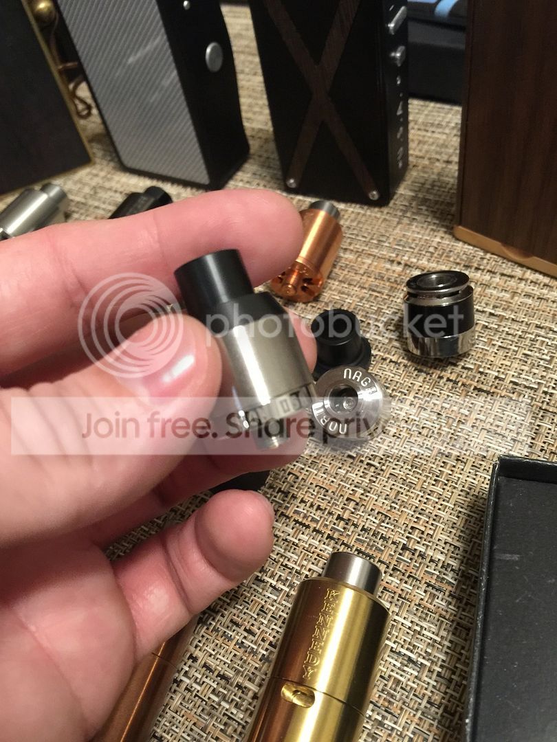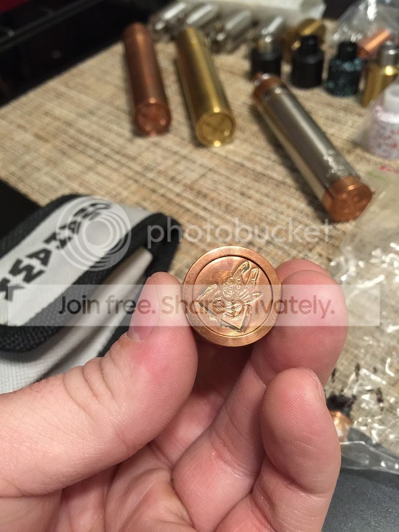 Available - Brass Kennedy Demon 22mm - $10 Brass Kennedy Dragon 22mm cap - $10 Copper Kennedy Dragon 22mm cap - $10 Copper Kennedy Demon cap 22mm prototype with regular 510 tip hole but no tip. Can find one somewhere if you ask. - $10