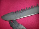 Thanks 1SHOT, it looks like that thing tore through there pretty good. That is one mean looking knife. :thumbup: I have been toying with using a black oxide finish. How is it holding up? I know all finishes/coatings wear, but I prefer the acid etches/bluing to coatings, since they don't chip/flake. I'd be interested in hearing your thoughts. Thank you,