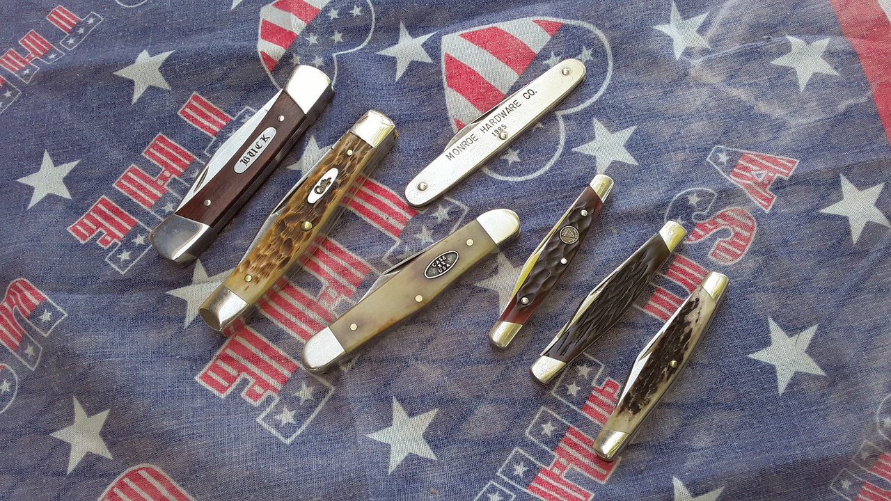 BUT...as the years went by and somehow, when I wasn't looking, my knife thing faded a bit for me. No, it didn't go away, but as I aged, and suddenly realized that I had gotten old, others things became more important. As I started to get uncomfortable close to the expiration date of men in general, the people in my life became way, WAY, more important than the 'things'. But...having a knife or three on me was still a very important thing. They just grew fewer and smaller. My collection became small enough too hold in one hand and fit in a nice leather zip up tobacco pouch. A bit snug, but they fit.
