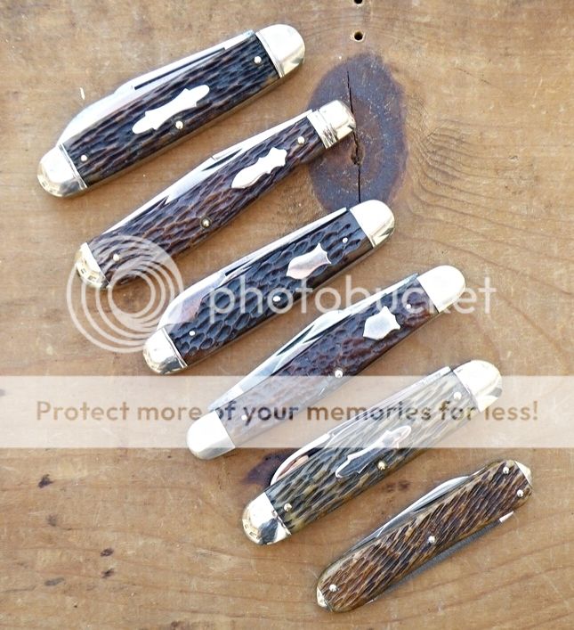 Dan, congrats on each and every one of those beauties you acquired! :thumbup:Here are the knives I purchased at the show. Top pic is 4 Keen Kutters and a Pal Cutlery Co which was modded by a member of another forum. Second pic is a Keen Kutter scout, a Kingston jack (gift from Charlie) and a Washington Jack. Third pic is a Schrade Cut Co, a Simmons whittler made in Germany and a Repeat Needham Bros.
