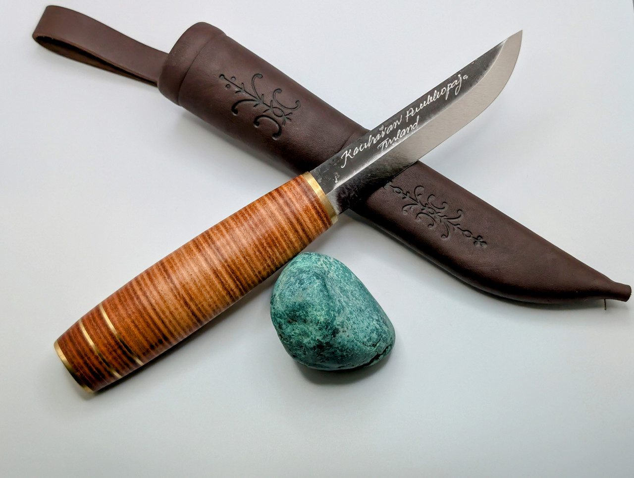 A maasepänpuukko (village smith knife) like this is a hard worker! My Malanika puukko is simple and tough as nails, like yours.I recently bought this Teuvo Sorvari birch bark puukko from Lamnia, and honestly, my first impression was… pretty rough.